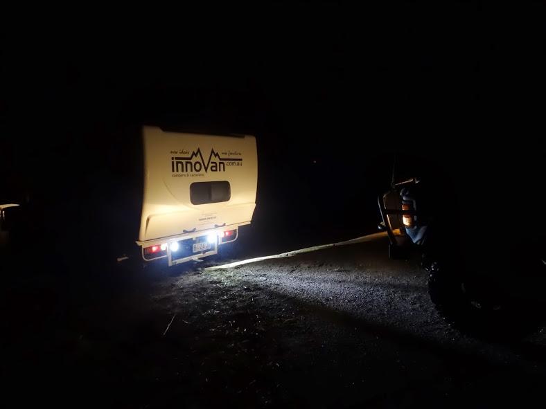 Pulled off a bitumen road to check a set of roadside picnic tables as a spot to kip for the night. Heavy rain for days had us very cautious about going any where off road.
