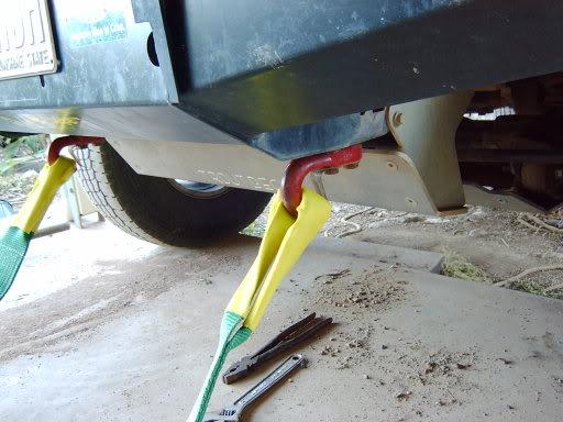 The only trouble is that the ARB rear bars make it nearly impossible to get a strap all the way in to the retaining pin location.