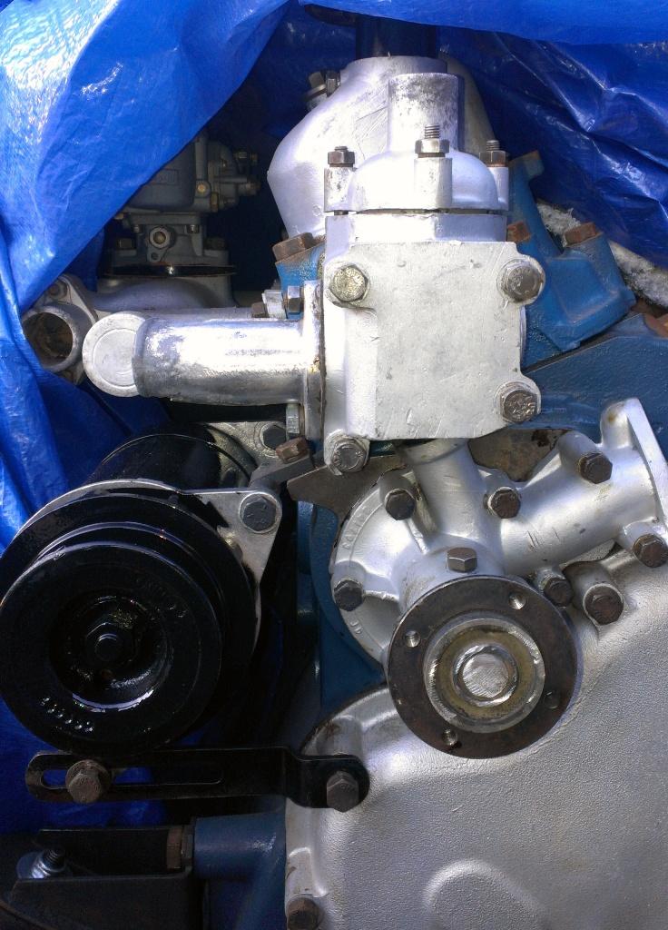 Water pump overhauled and fitted with thermostat housing and new thermostat.