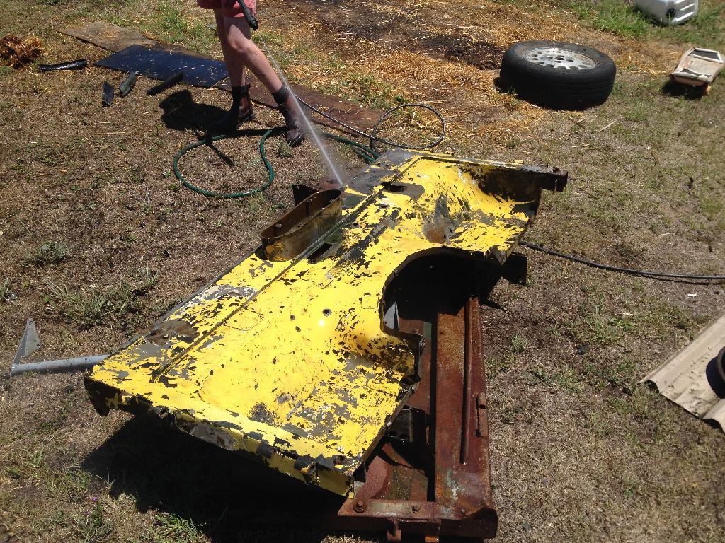 Finally after a bit more tinkering, I have got my 80 down to the bare chassis, well as bare as I can get it, as the steering relay and the clutch pedal are still in and won't budge, I'll just see if the sand blasters can be careful in those areas. I'll check out the sand blasters on Monday . So the fun of putting it all back together can start, I do think that it will take a lot longer to put back together than it took to pull it apart ( I just hope I can remember where everything goes). I am happy with how it is going and I may have found an original engine , but that is another story.