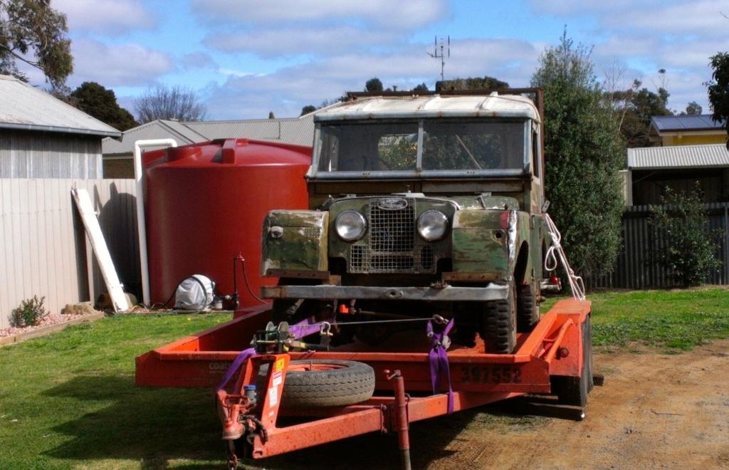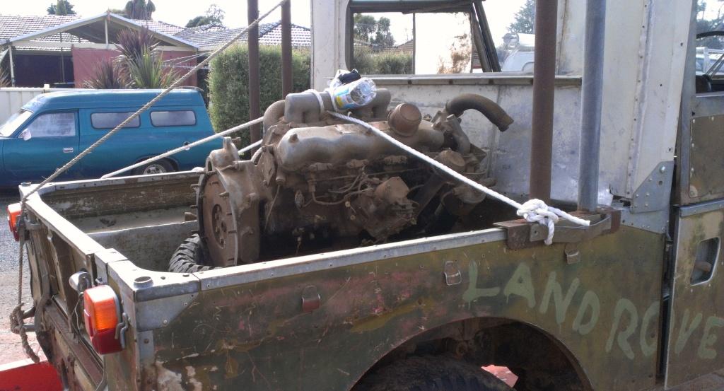 Genuine 1958 S1 Diesel on its way to new home, with original power plant in the back.