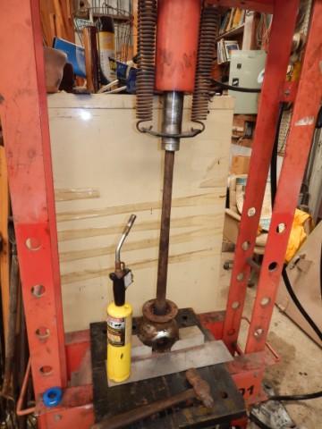 Anyhow today was a good day as we managed to get our press operational, not finished but functional. It is great to be able to remove those axle collars without having to borrow other people's equipment. The press' maximum pressure is 12 tonnes and this was just enough to remove the bearings, with some heat applied to the locking collar