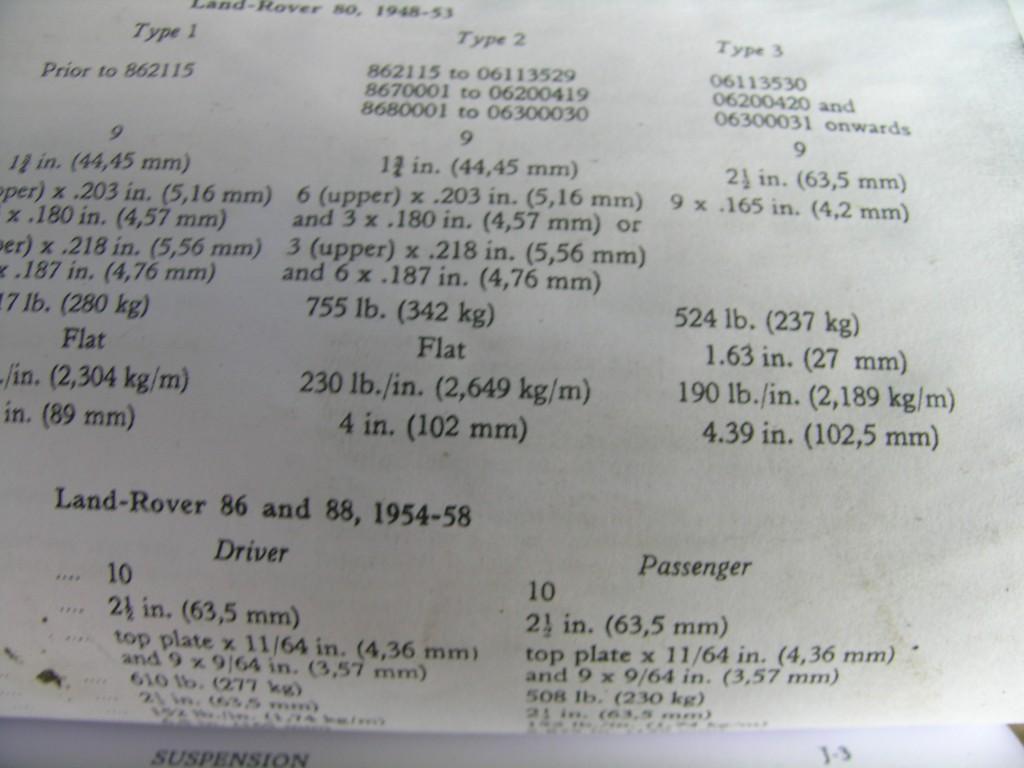 From the Series1 Workshop Manual, both drivers and passengers side of the 80inch are the same, but there are variations between the different 80 inch models. It is only on the 86inch on wards where they distinguish between the drivers side and the passengers side springs