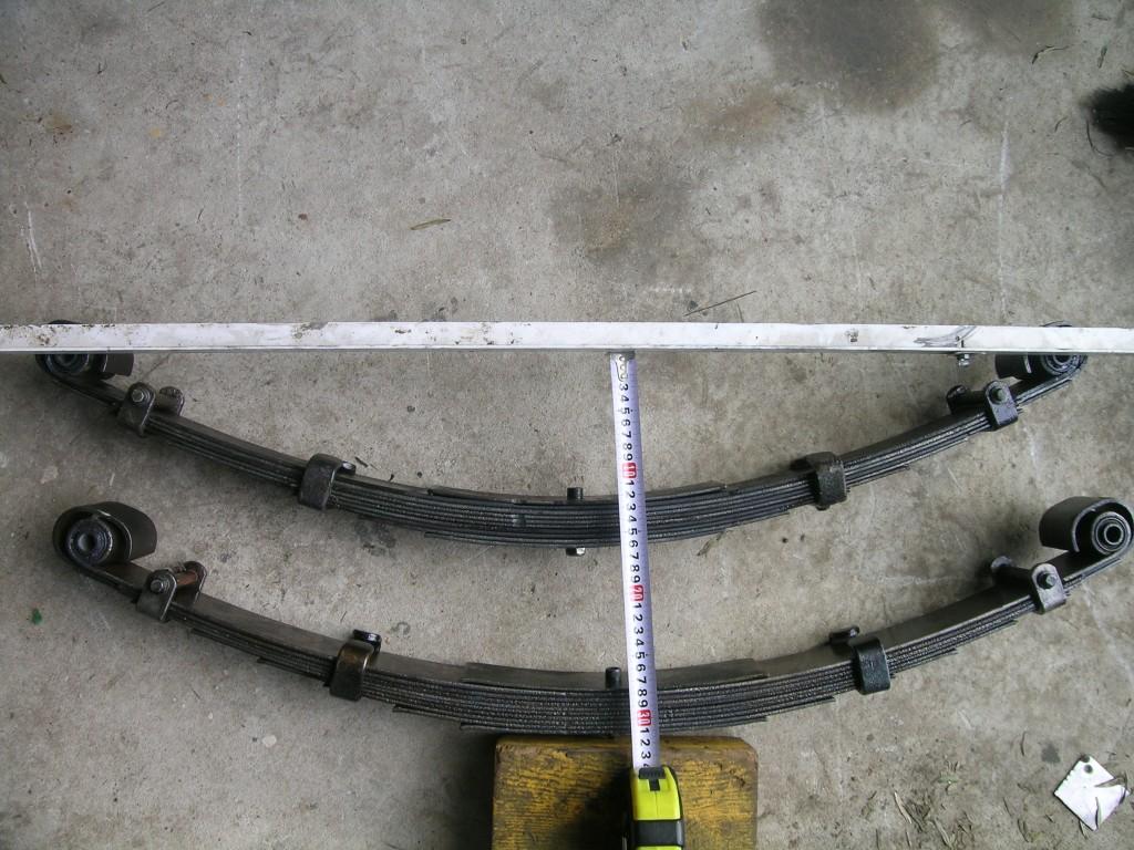 As for front springs, I have just finished these using the 9 leaf skinny leaves. I set them to 125mm drivers side and 115 passengers side. Resetting springs using an anvil and a hammer is no exact science. Spend an hour belting them, assemble and measure. If not enough, have another go. The above measurements is how they turned out - near enough.