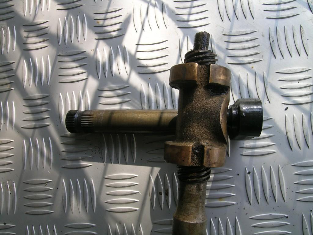 Part of my goal was to understand the individual operation of the vehicle. The steering box on this vehicle is a simple worm drive box with a steel screw and a bronze worm. This end of the box is in very good order, no undue movement, and the output bush is in good order. In theory a worm drive will not transmit any movement from output to input, so if you hit sat a rock the steering shouldn't spin.