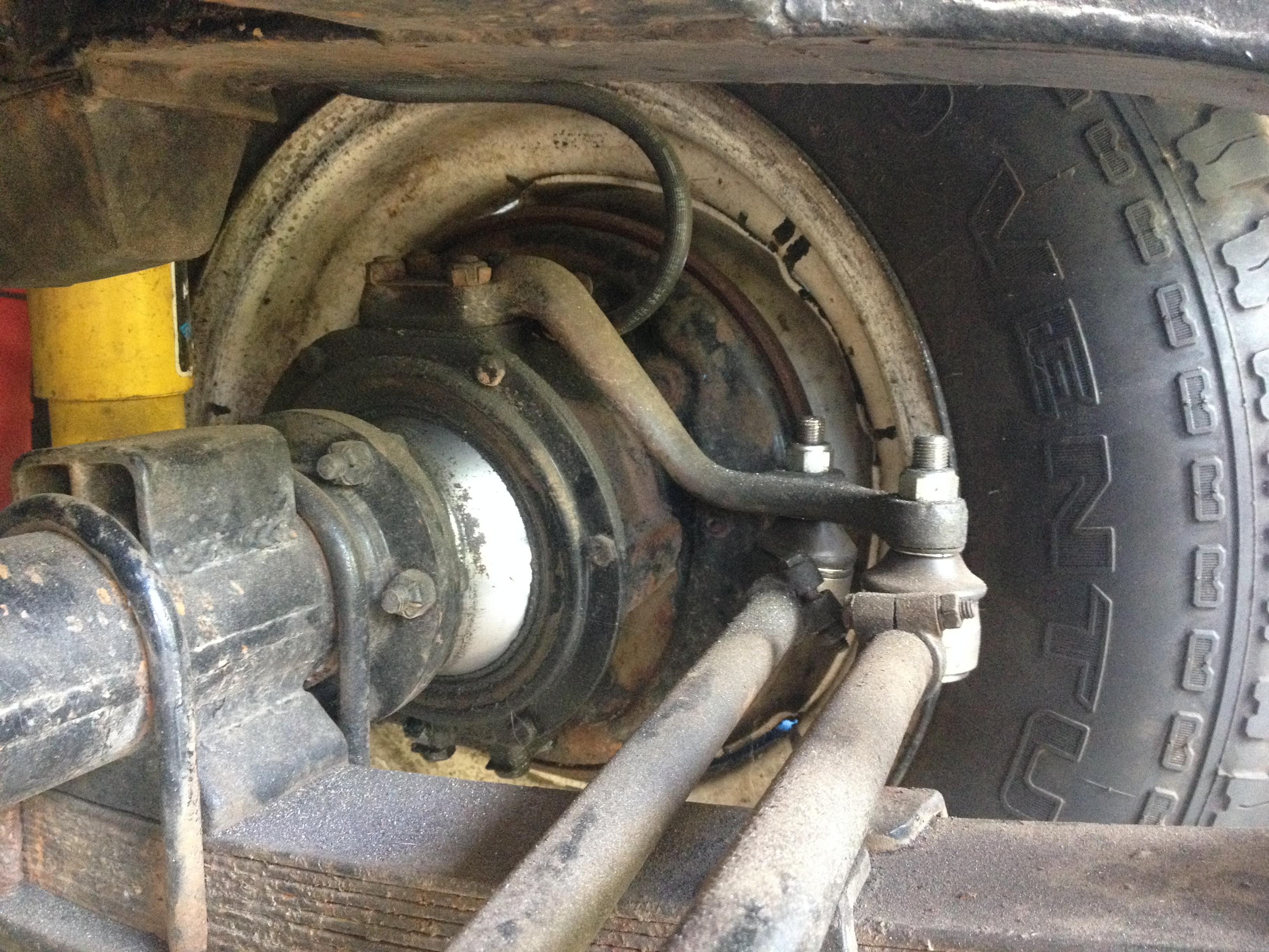 The stub axle goes onto the swivel housing and then the backing plate fits on the outside followed by the bolts. You will notice that there is a shoulder in the stab axle that is the same thickness as the backing plate. (Or you could fit a set of cookey's disk brake conversion which bolts to the same place where the backing plate was originally. )