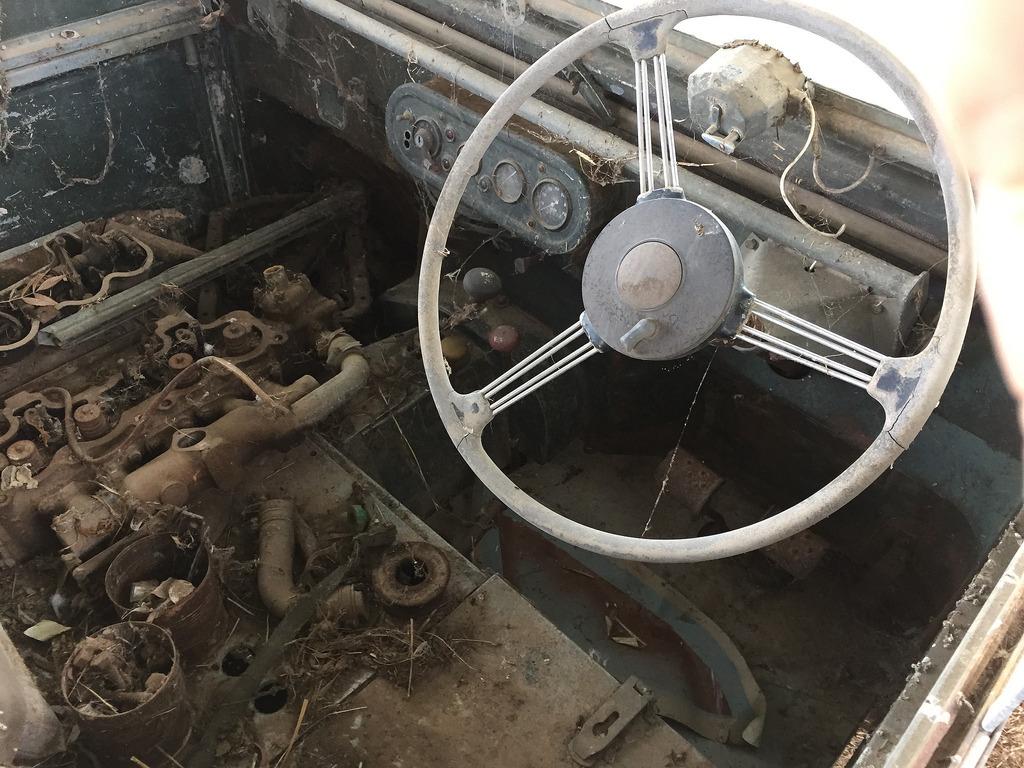 With work on my IIA, III Dormobile and Defender getting close to finished it feels like time for another project - the one that got me into Land Rovers as a kid and the first car I ever drove. It's my grandfather's 80" which he had on the farm since the early 70s (always kept in the shed so no real rust to speak of). In the early 90s it apparently 'dropped a piston' and the mechanic took the head off as well as one of the conrods and pistons. It's been sitting in a shed since then, long since replaced by a 109 IIA. I'd like to get it going again but for sentimental reasons have no interest in a cosmetic restoration - I'd like to preserve it is but fix up the mechanicals, straighten the kink in the front of the chassis, get the brakes and lights working etc.