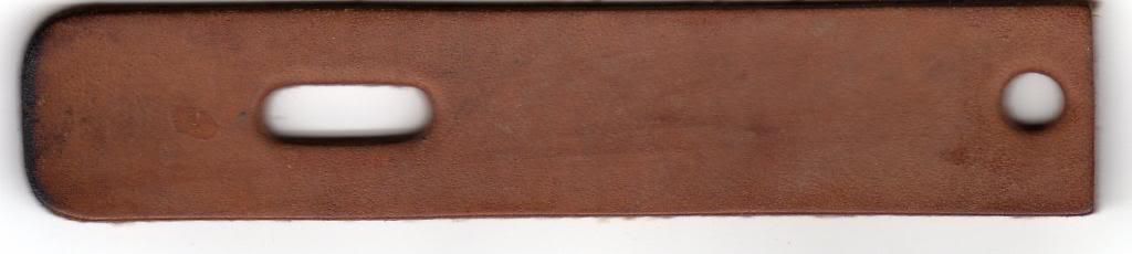 From the timber locating strip the strap would appear to have been approx 1/2" wide. I'm guessing it was leather with a hole/slot to locate on the stud (pn 302463). I'd like to get an idea of the shape & colour of the strap.