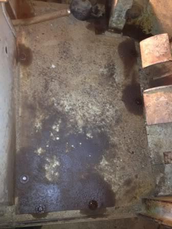 LHS floor pan is out, all nuts and bolts sheared rather than loosened!! RHS soaking in "penetrate"