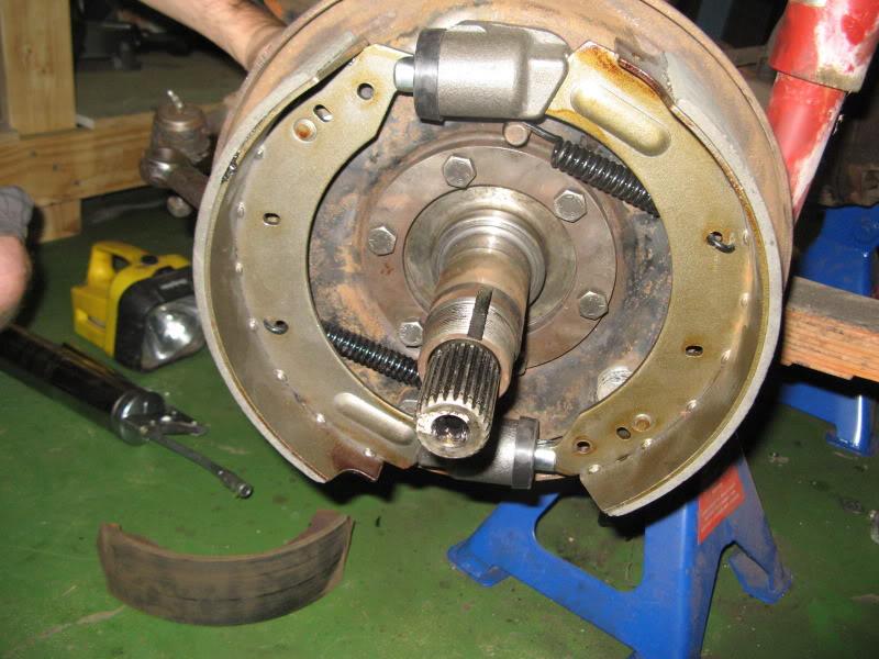 If you removed the backing plates all those months ago, be sure to refit them to the correct side of the axle, otherwise the brake shoes willbe trailing with virtually no stopping power except in reverse.The example in Petes photo is for the left side.