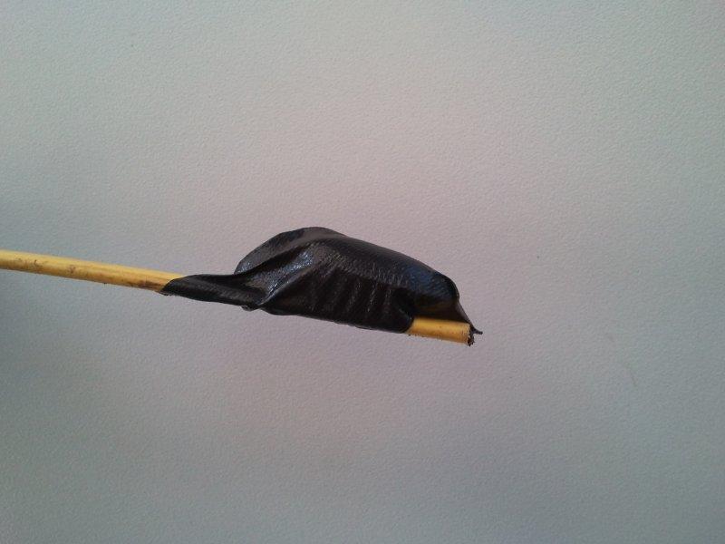 This is a oval shaped sinker approximately 30-40mm long, taped to the end. The extra weight drags the yellow tongue down nicely, making it go where you want it. We found that taping the front down a little so it sloped up nicely also helped get through. A twist of the yellow tongue where you get stuck, and you can reliably get right through the chassis. Tape your pipe cleaner on gently, pull back through until you reach the dumb iron and then yank so the tape snaps, Bob's your uncle.
