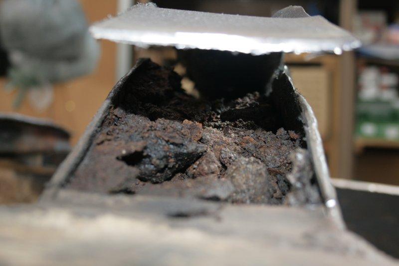 The bottom was fairly badly damaged, so I took the grinder and cut it out. I wasn't entirely prepared for what I was about to find.