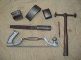 The slapping file is made from an old 10” or 12” bastard file and bent to shape when hot and with the tang cut off; there is no need to heat treat it afterwards; a bit of plastic hose makes a comfortable handle.