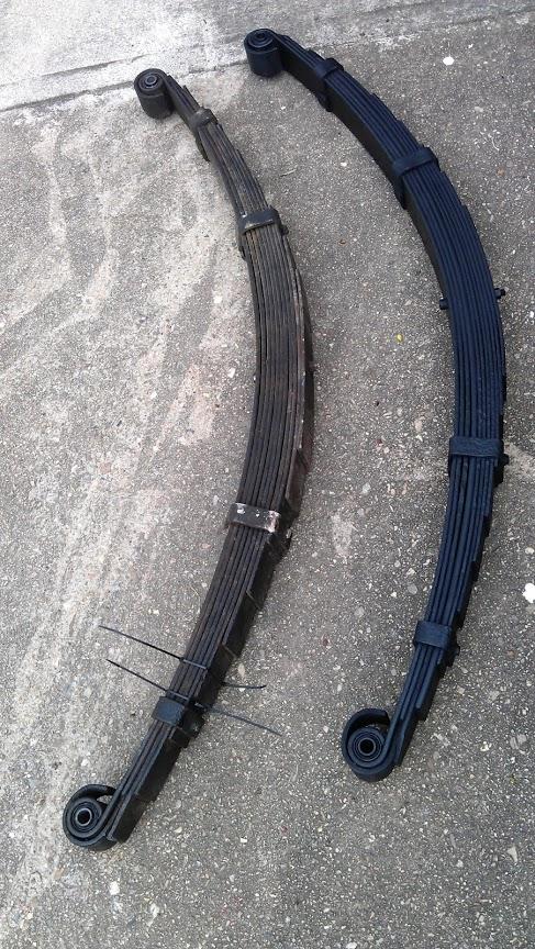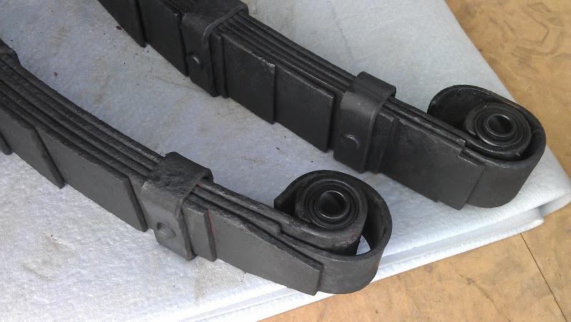Cannon: if you don't want to undo the clamps, you can still grease the leafs. Get a G-clamp and clamp the pack by the bolt in the middle. Undo the bolt, then undo the clamp. This will let the smaller leaves drop off, and allow the bigger leaves enough separation that you can grind away any ridges at the ends, and then use some spray grease like Wurth HS2000 in-between the leaves. Clamp it back up and bolt it, clean off the excess grease squeezed out and spray it with Penetrol.
