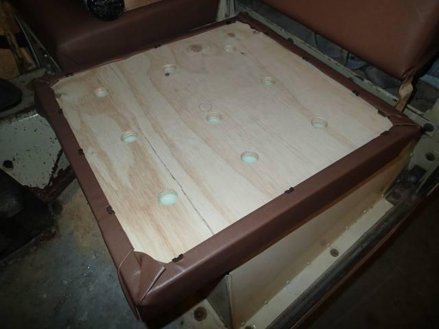 No trick tools of anything like that. I just bought 75mm foam for seats (hmmm, that new car smell!) and UV resistant vinyl. I reused the metal frames, these were still very serviceable, and remade new timber bases, just with 12mm ply and drilled air holes in it in the standard size and places.