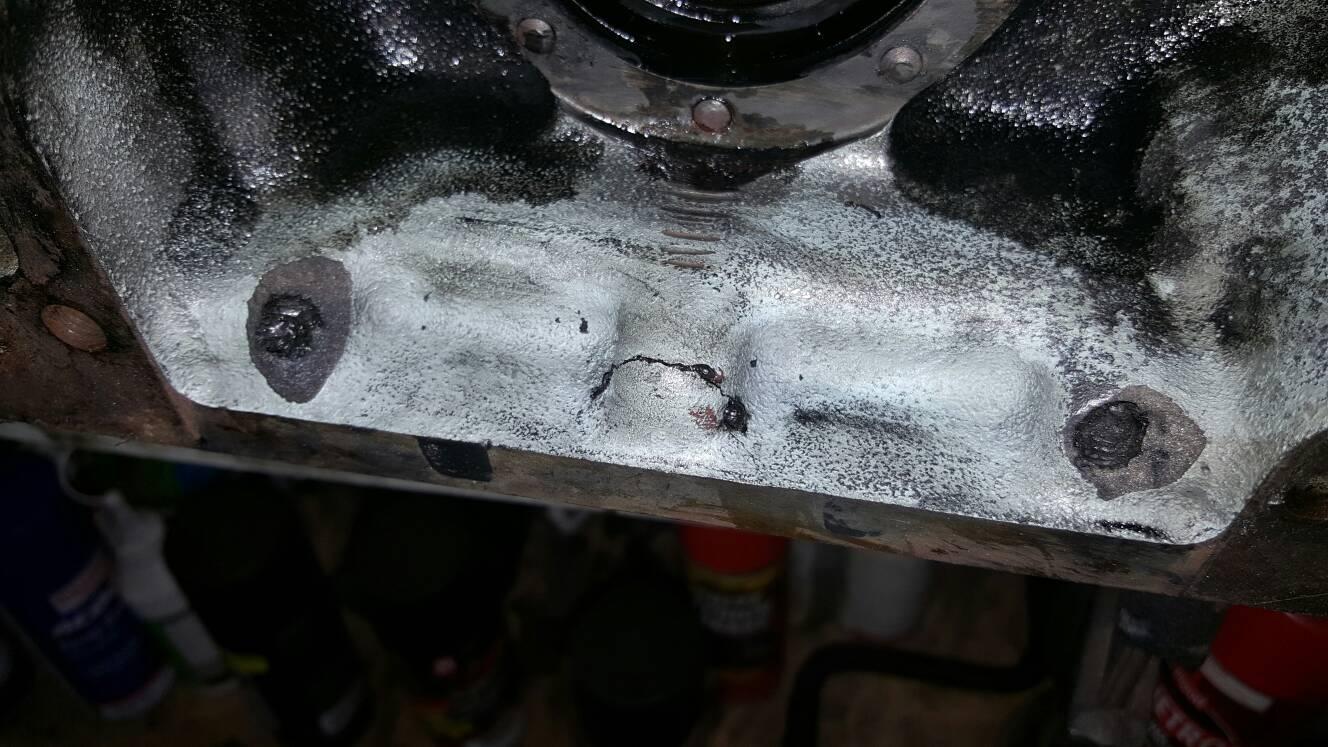 Found out where the two bits of painted cast iron came from and i know why they broke off. See the middle is cracked as well. The holes broke out coz some dipstick filled the holes with silastic and the resulting hydraulic lock up from screwing the bolts in, broke the housing on 2 holes and cracked the middle hole. I hope the petrol timing cover is the same.