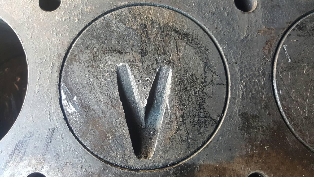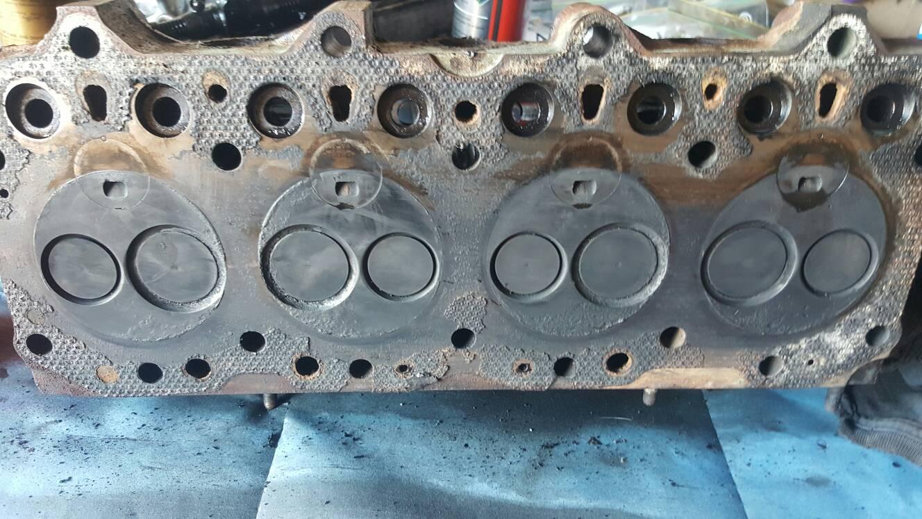 I put the diesel motor on the engine stand today. I pulled the rocker cover off and fuel injector pipes. I pulled 3 injectors out. I couldnt budge no 4 injector. I sprayed around the base where it goes into the head. I tried to move it. No way it was coming out easy. So i sprayed it some more then using a brass drift and a small hammer i tried to turn it in the head after removing the 2 studs. It moved a tiny bit. I suspected it was starting to screw itself apart inside the head. So i moved it back and forth spraying it as i went. Still not coming out. So i got a bit rough. I got the ball joint splitter and started forcing it under the sides of the injector. It finally started it upward journey. When i reached the end of the wedge i grabbed a BIG spanner and added it under the splitter as a spacer. Got a bit more out of it. Then got the 18" shifter and put that under the splitter and out she came. Man was that tight. I even tried a slide hammer but that injector wasnt coming out. With all the injectors out and filed away in clean plastic bags i pulled the head off. I wasnt prepared for what i found. Something has been bouncing around on top of no 1 and 4 pistons. Nos 2 and 3 are not too bad. There is no damage to the head but i noticed that all 4 precombustion chambers are loose fitting in the head. It had a composit gasket fitted where the new gasket kit i have has a copper one. I suspect that the PO before the guy i bought it from had the head replaced when the pistons were damaged, and just reused the pistons instead of replacing them. See attatched pics of pistons and head...
