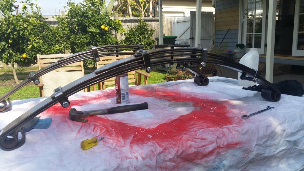 I rebuilt the rear springs over the last few weeks following some very helpful advice posted on here by isuzurover a couple of years ago. They were just a tad on the firm side, partly from being a bit seized up and partly from having too many leaves. I could stand right at the back of the tray and bounce up and down and the only thing that flexed was the tyres.