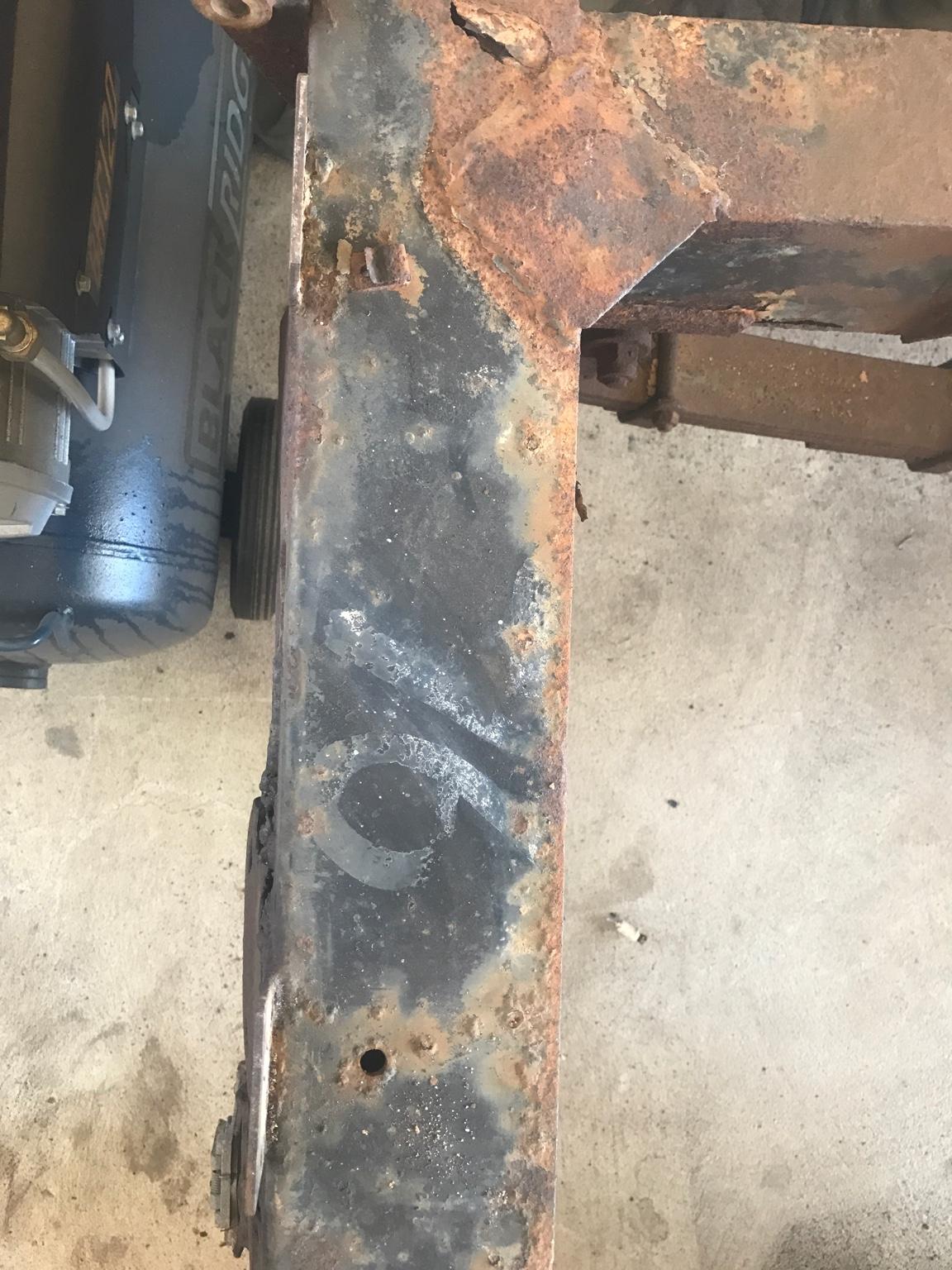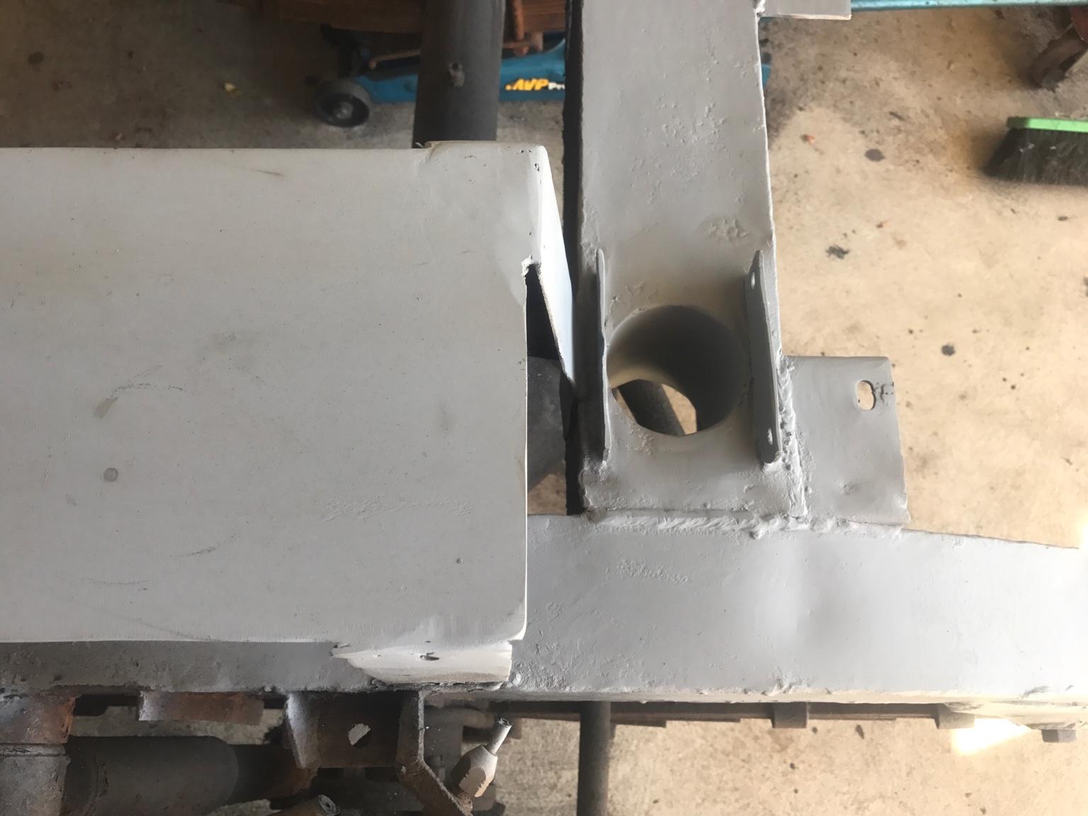 I had a hour or two spare this afternoon so had a go at the cracks in the left hand rear outrigger also found another 76 in grey/white painted on it , same as what on rear crossmember