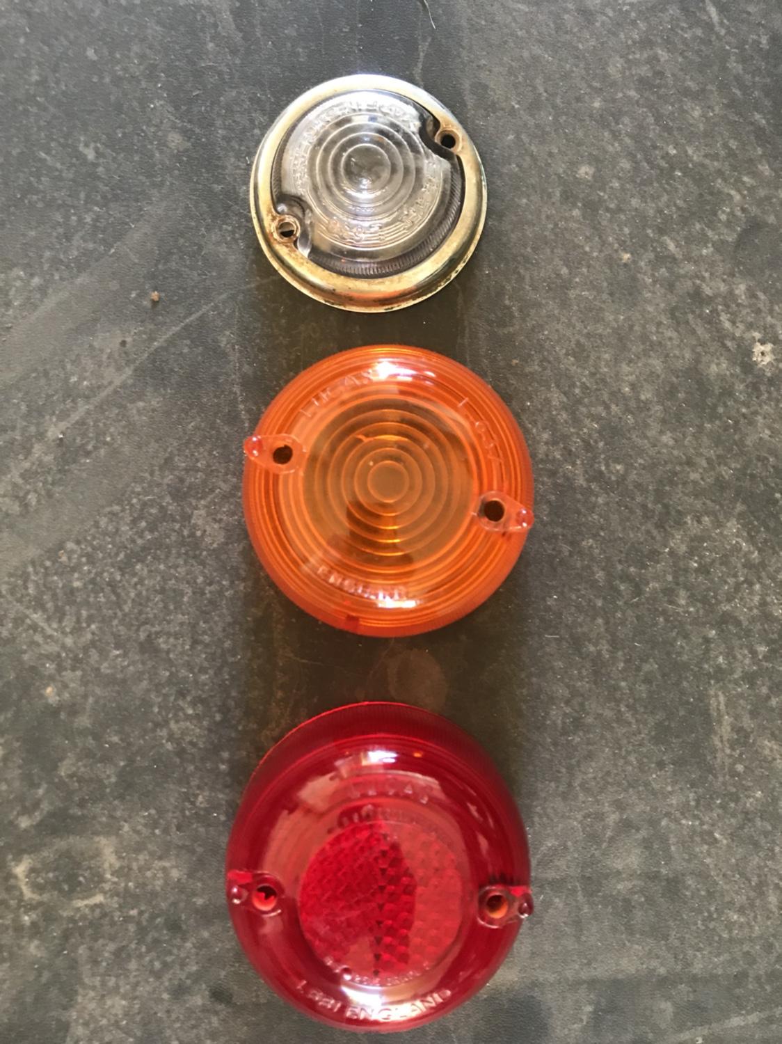 The lights are new, I got them from Craddocks as I do with most of the parts I buy; but they are just cheap Britparts items, anybody will have them. I plan to replace the bulbs with LED to try and up the visibility, compared to modern taillights these are very tiny.
