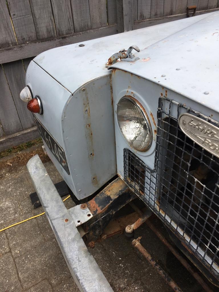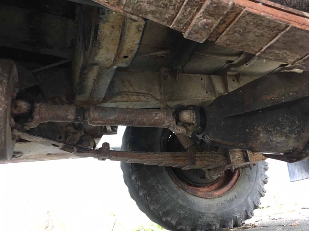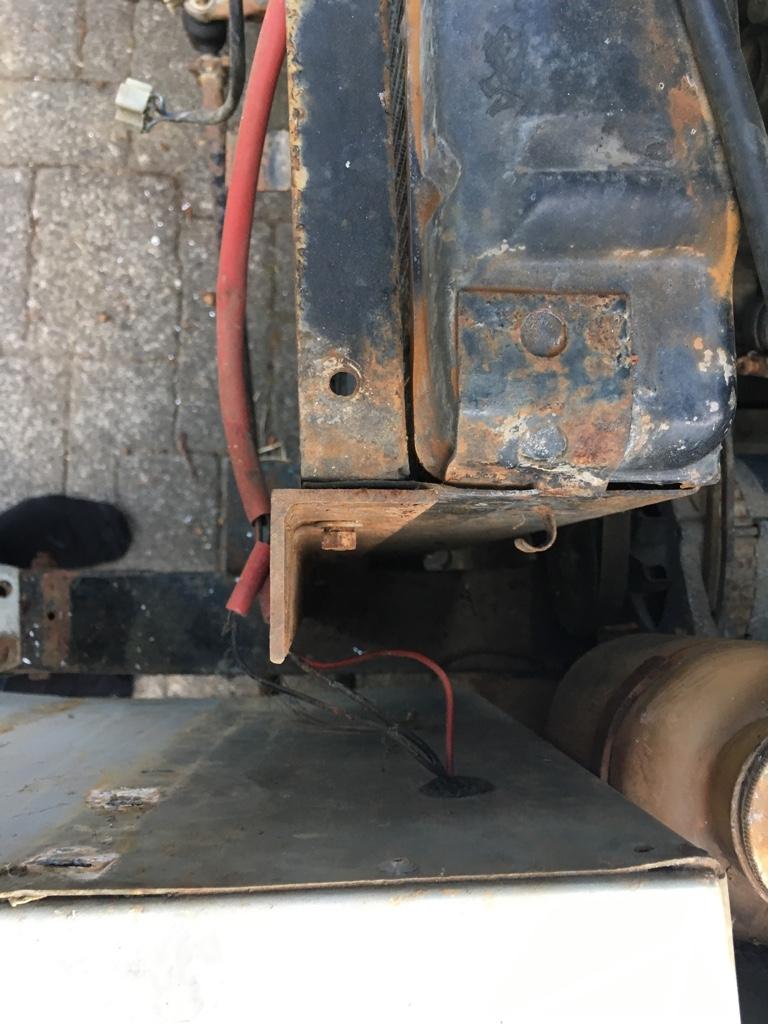 Anyway, today I couldn’t stand the checker plate so I dove in to getting rid of it. The previous owner had gone to quite the effort to mount the grill about 5 inches forward to accomodate an electric fan. He’s welded in a piece of angle iron on each side of the radiator as it normally mounts to the grill so I’ll have to get the angle grinder out and whip them off to return it back to original.