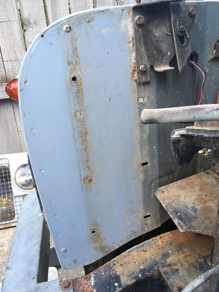 I have cut off the “aftermarket” radiator supports and roughly cleaned up the welds. Quick degrease and a coat of temporary zinc until I start the proper tear down.