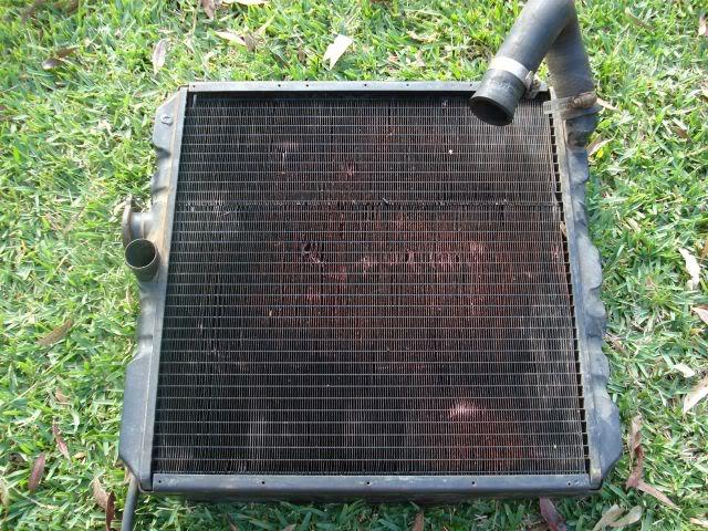 Instead of progressing on the brakes, I pulled the radiator out. Thoughts on the condition? I'm thinking a recore is in order... Is it appropriate for an early 2a? Andrew thought it might not be original equipment.