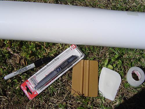 Slowly apply each layer. I applied white, then added stripes over the top. It goes on easily, but each rivet has to have the film stretched, heated and carefully applied.