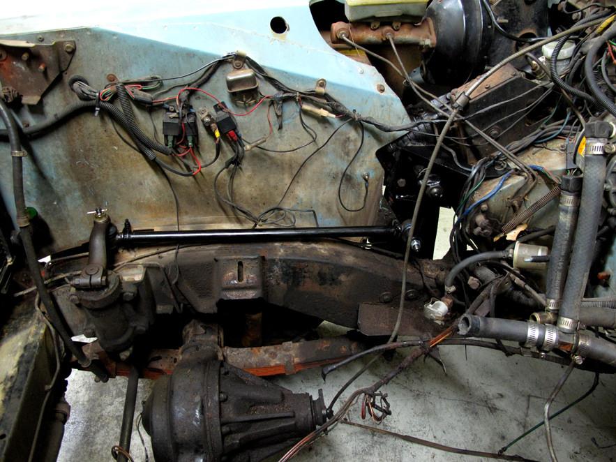 Yes its a holden 253 & nissan 5 speed..Yeah i swing them off the crane to get it all lined up..I bolt the gearbox in at Tcase then i can move the engine up or down & left to righ to get it right.I also make sure the drive shaft is straight to the diff..I have noticed when the holden 6s are fitted they seem ti sit higher at the front so they are on an angle..When i have the engine in the right spot on this it should be on a slight angle to allow for the OLD bushes rubbers on the Tcase as they are sagged so when i rebuild the engine & box & put all new rubbers in it will sit nice & level I hope..I will mod the baulkhead where needed but i think its going to be very minimal mods.Find out when throw it on to see what needs what..
