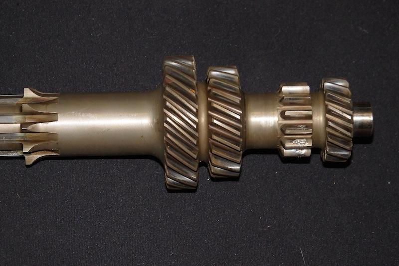 When everything was in bits I also noticed the layshaft damage caused by the detent springs being crunched through the gears. Everything else looked very good (or so I thought), apart from the reverse gear which needed a new bush and pin.