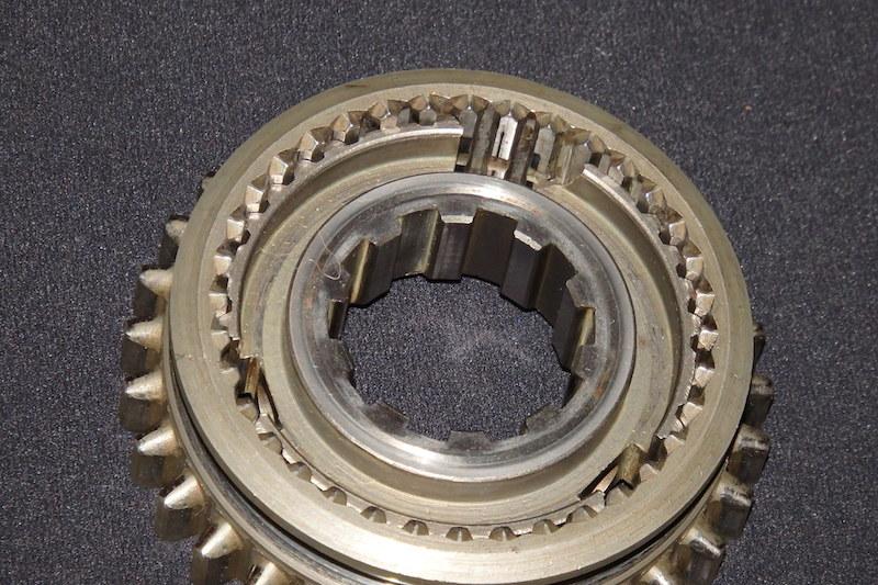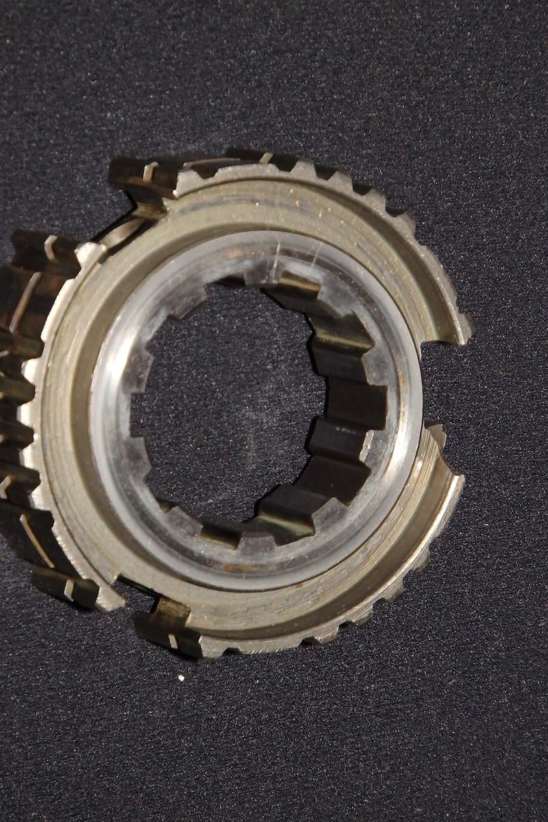 As I was frigging around measuring end floats and reassembling the mainshaft I just happened to notice that the inner teeth on the syncro hub looked slightly uneven. Dang! I so very nearly didn't spot the missing tooth! Reassembly at this point would (I suspect) have fixed nothing! Some of you blokes familiar with gearboxes may laugh at my inexperience but this is only the second gearbox I have ever touched in my life and the first was in an EJ Holden nearly 40 years ago!