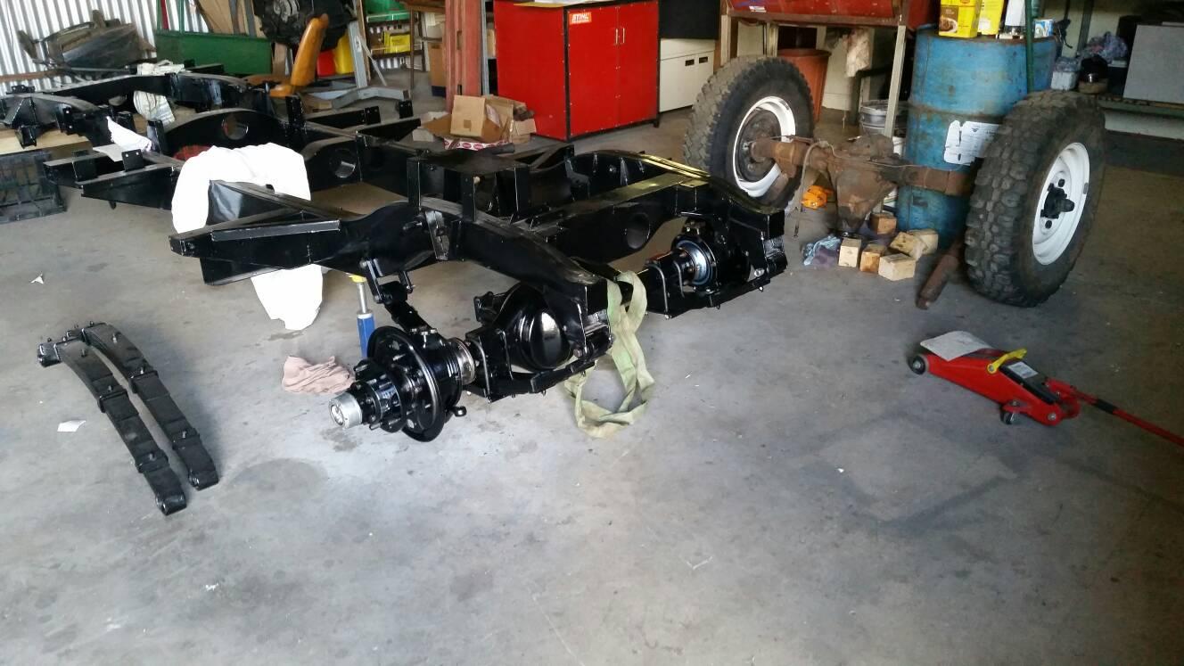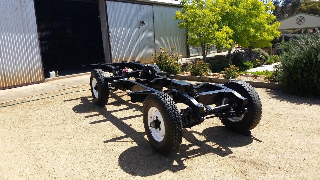 This afternoon I fitted the front axle & springs to the chassis. It's nice to be working with new/clean parts. I was hoping to fit the new shocks but they don't fit by about 1cm. I will need to wait until I fit the engine to compress the springs down a bit more.
