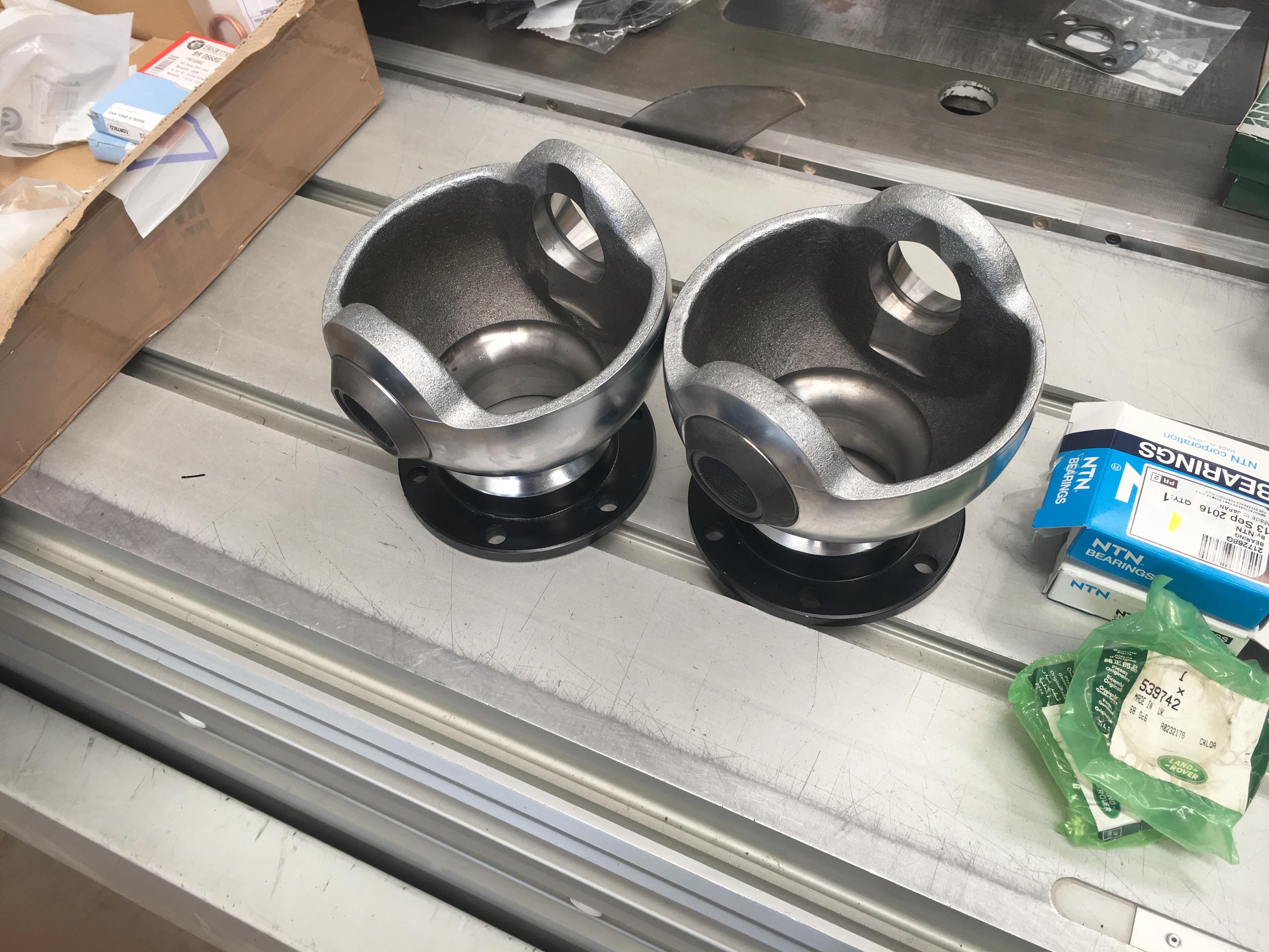 Visited the diff builder today, as suspected the front diff was a disaster, but he managed to sort it out in pretty short order. Rear diff just needed the pinion preload adjusting, (was too loose). I still need to remove the pinion drive flanges, paint them and fit the mud shields, and fit the pinion seals. Then they can go in the axle tubes
