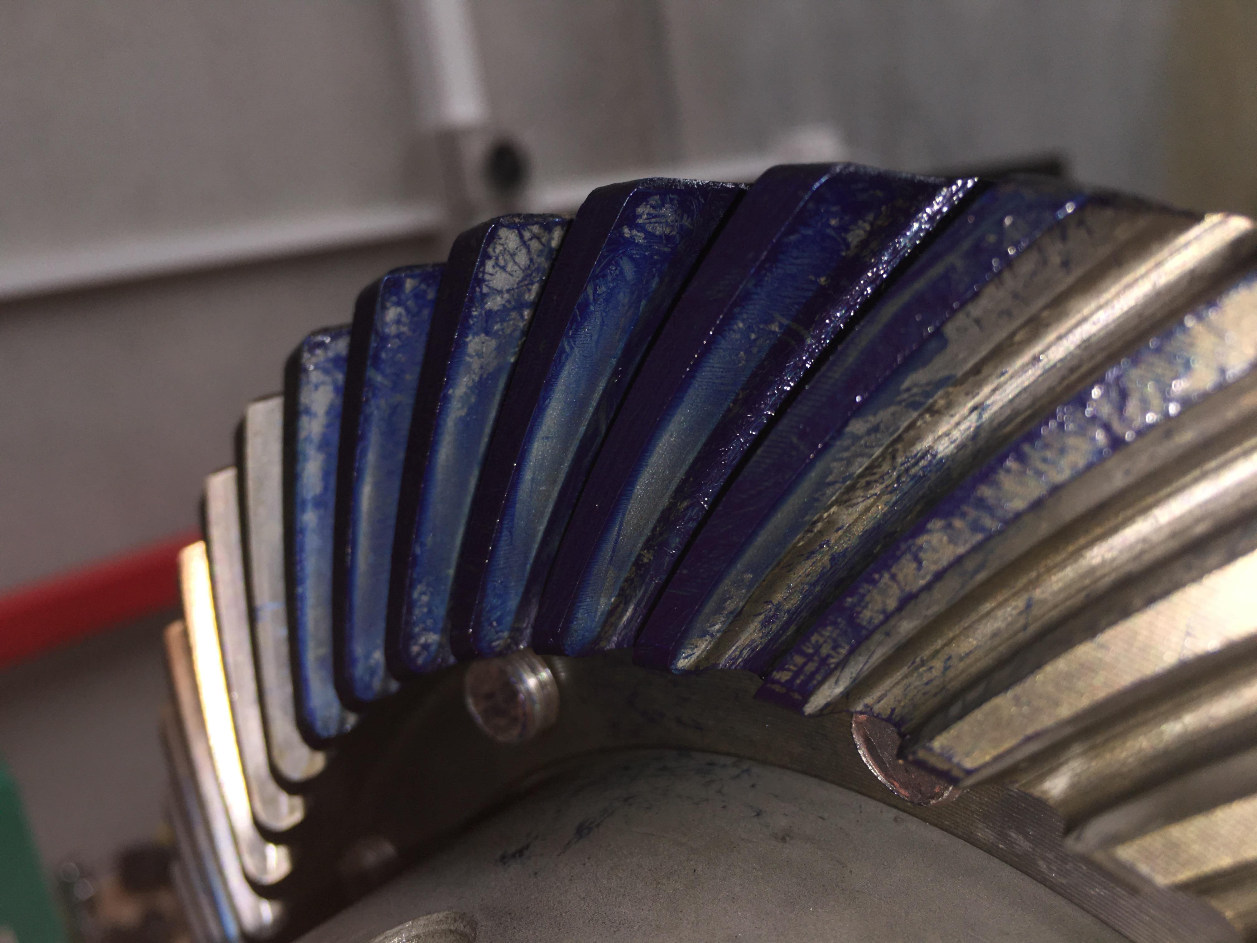 Well, in between bouts of painting today I faffed about trying to get the diff right. The tooth pattern is "OK", and it sounds alright, but the backlash has to be set a bit too high to get a decent pattern, so I think I'll get a proper diff builder to take a look at it.