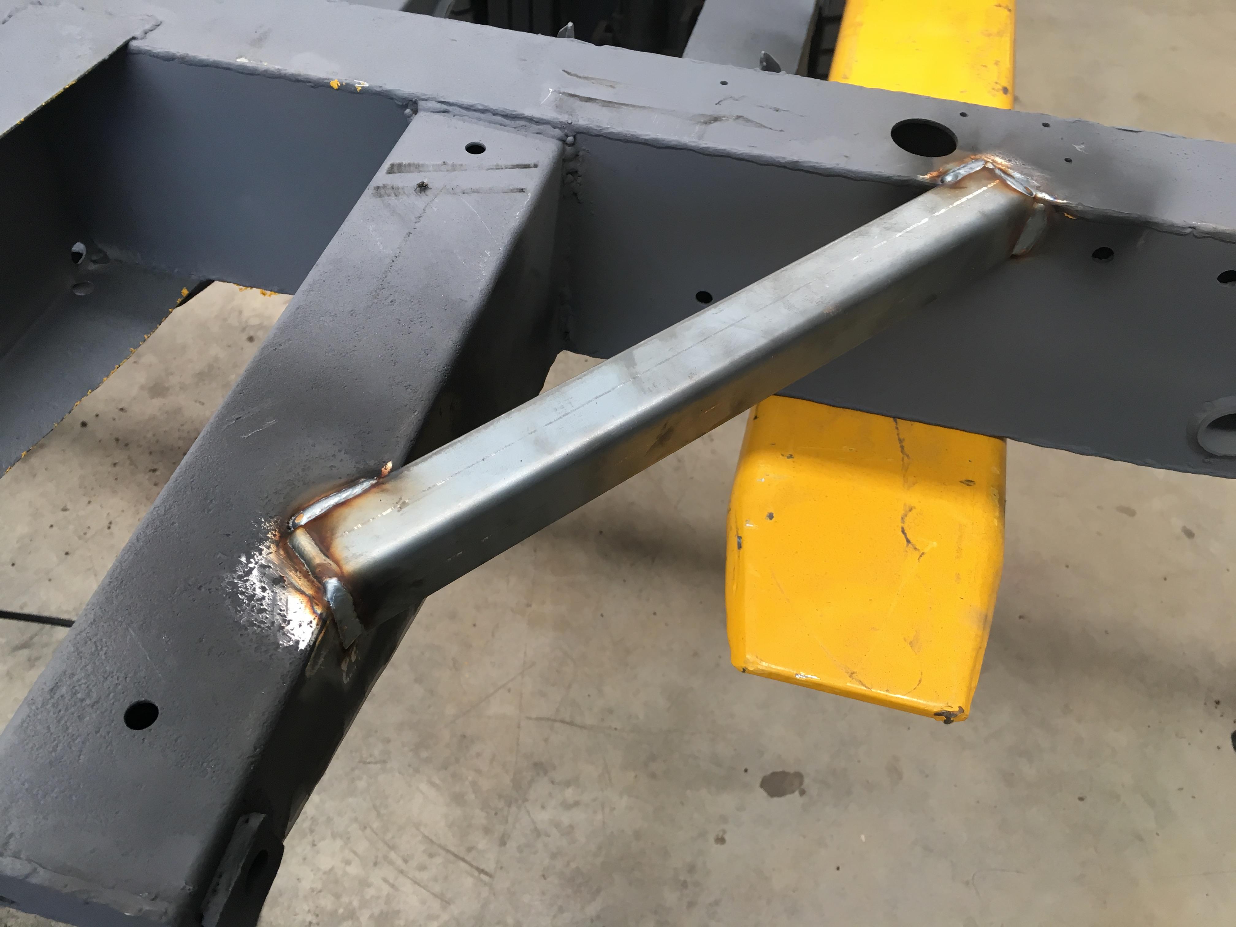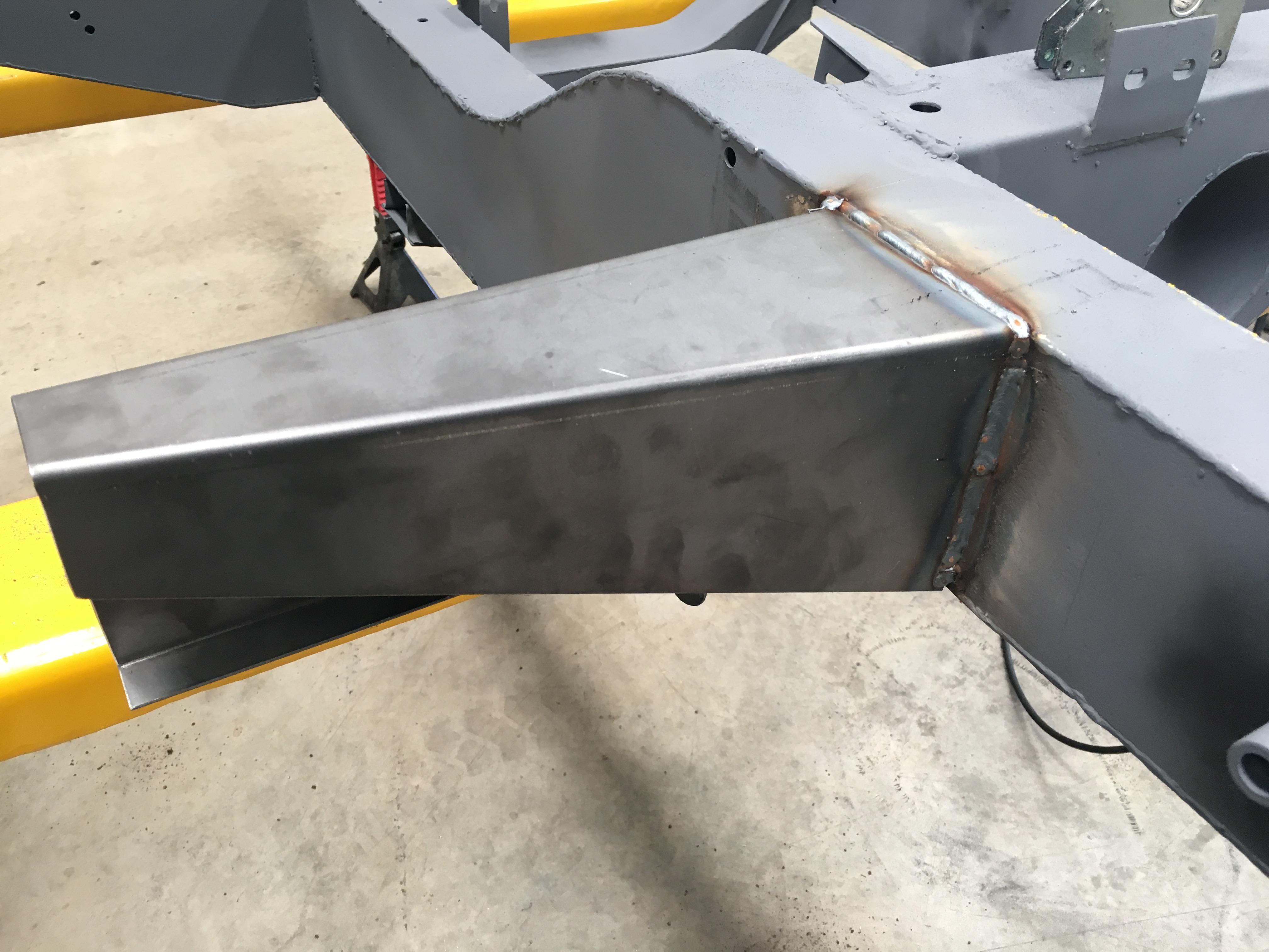 The chassis is pretty close to where it can be painted, there are a couple of welds that need finishing, the cross member infill panels need to go in, the front tub mounts, and the center tub mount also need to get stuck on with the welder.