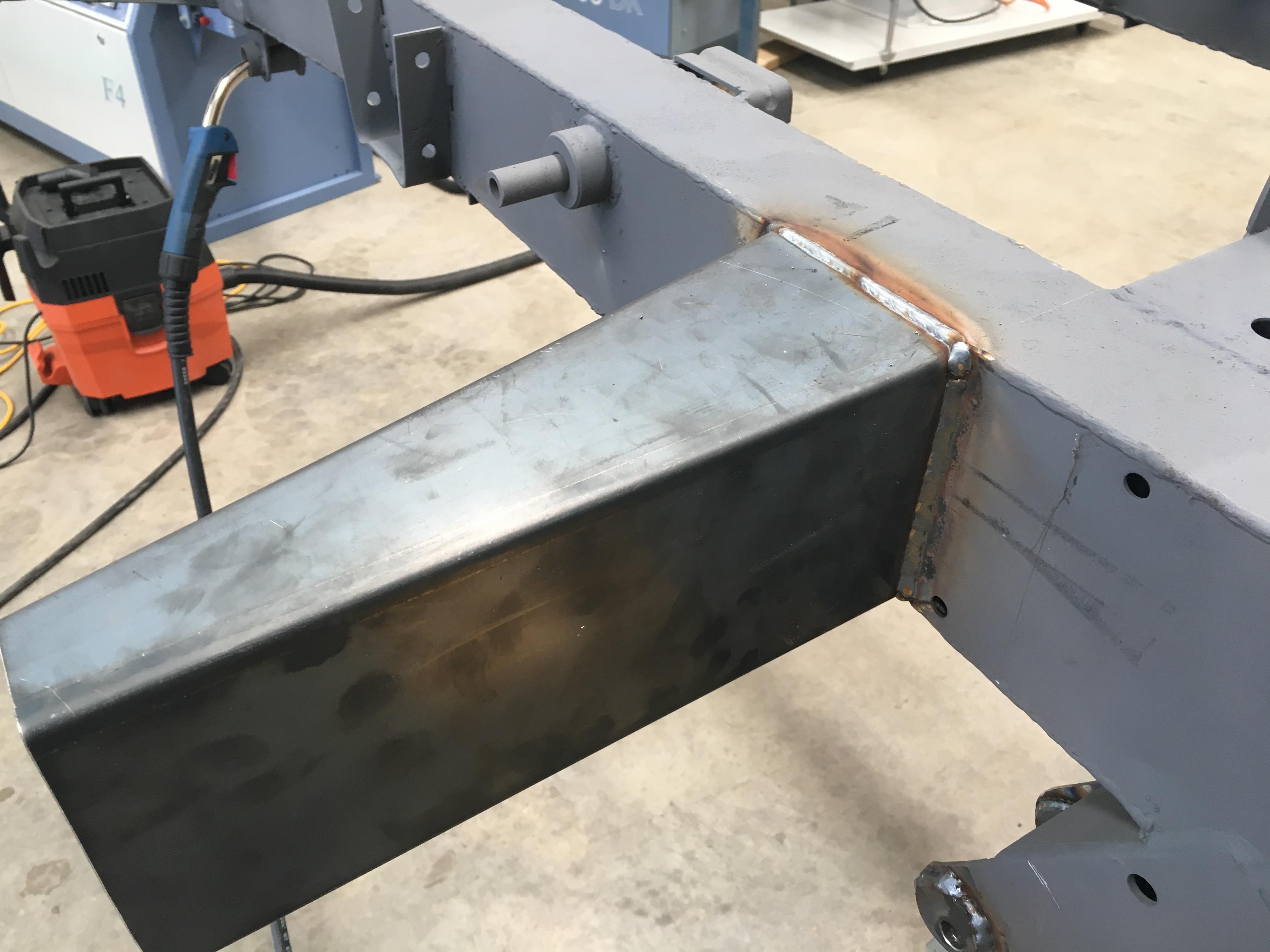 The sheet metal people got the chassis part finished, so they got stuck on with the welder: