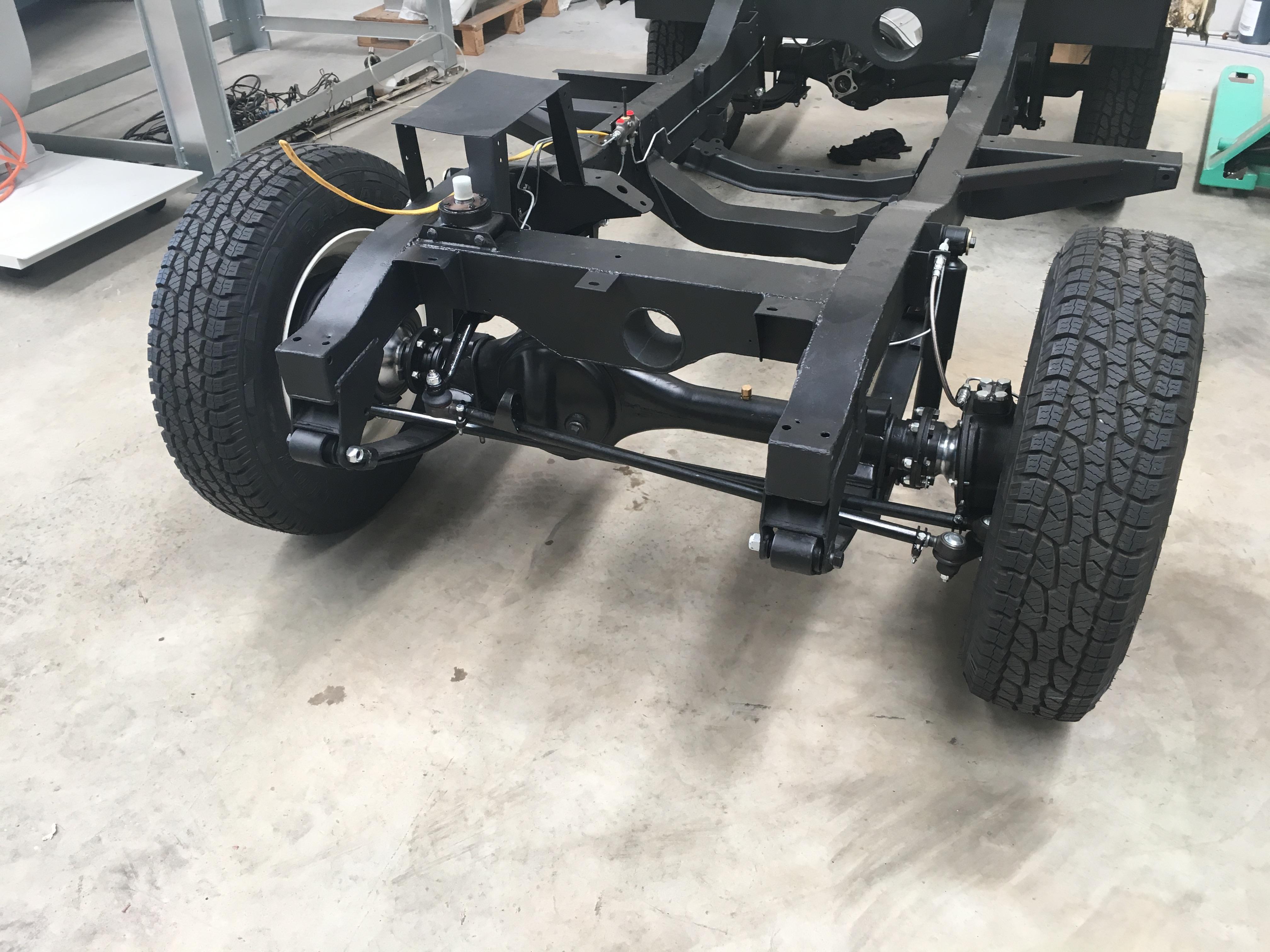 Track rod and drag link went on. I did a quick and dirty string alignment off the tyres, but I need to make some proper blocks up that sit against the rims. The thread pitch on the ball joints is about 1mm, so one full turn of the track rod should equal 2mm of toe in I guess :)