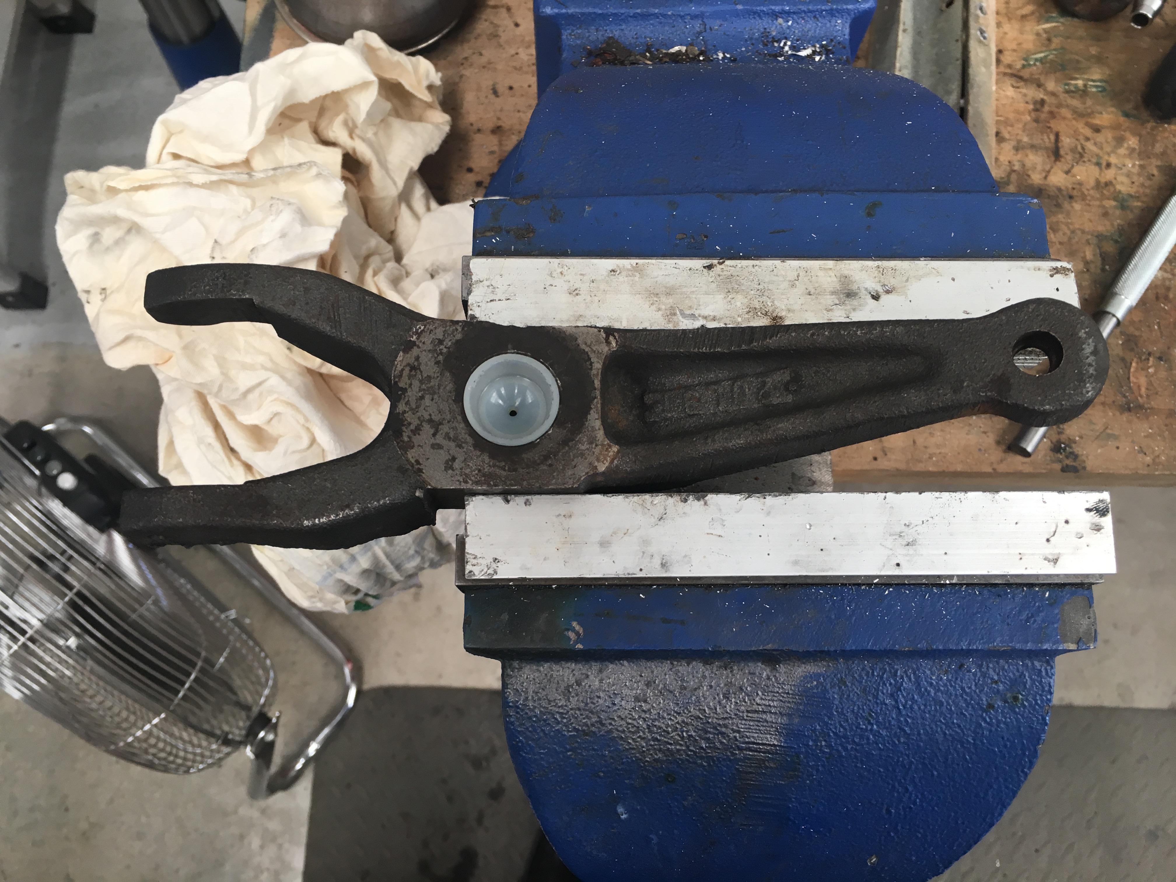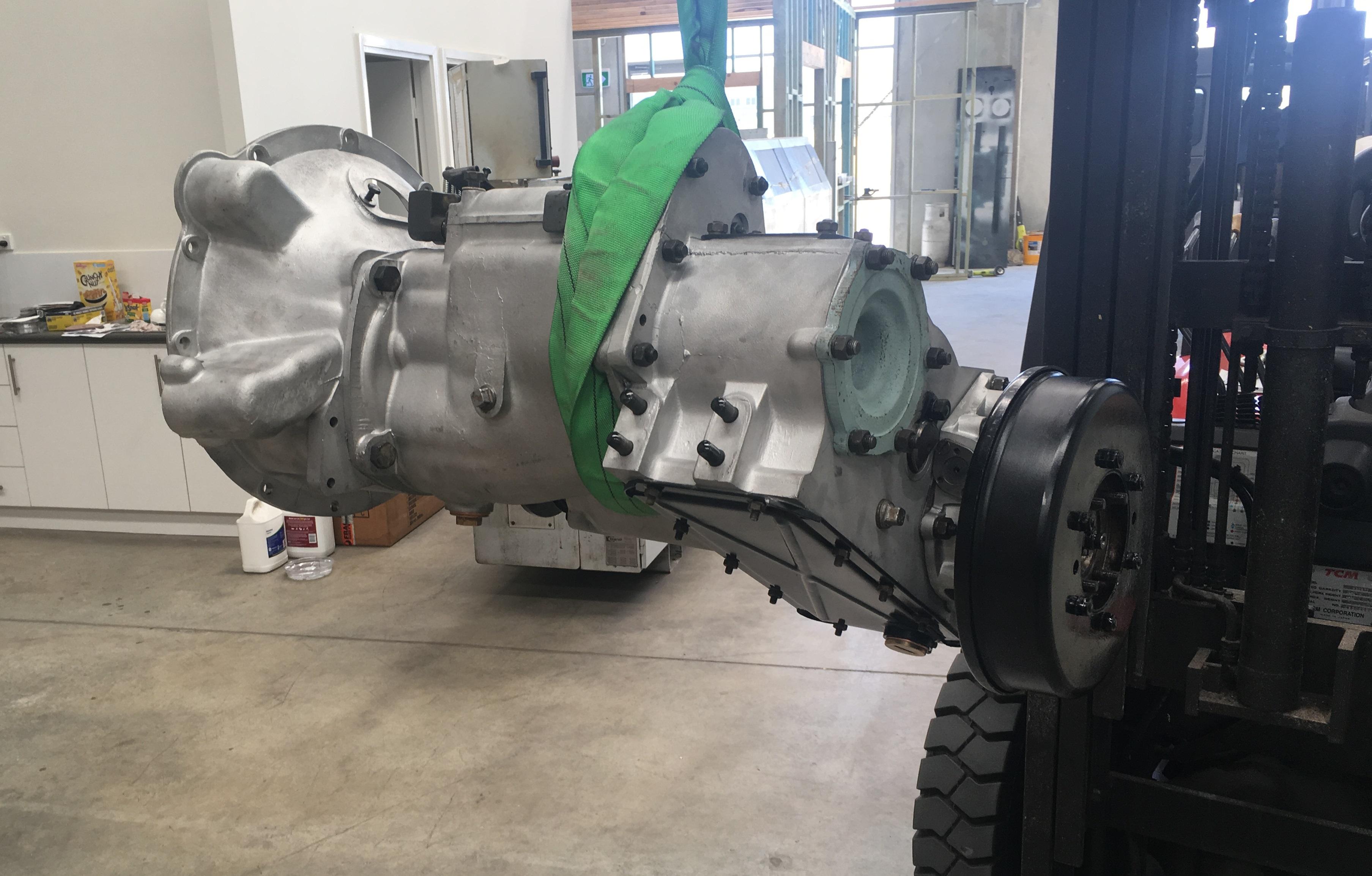 It was planned to put the gearbox back in its place, but the new mounts had metric threads on it, and surprisingly I had no M10 nyloc nuts. Also, I bumped my head on the forklift, causing me to rapidly lose interest in digging around for said M10 nuts