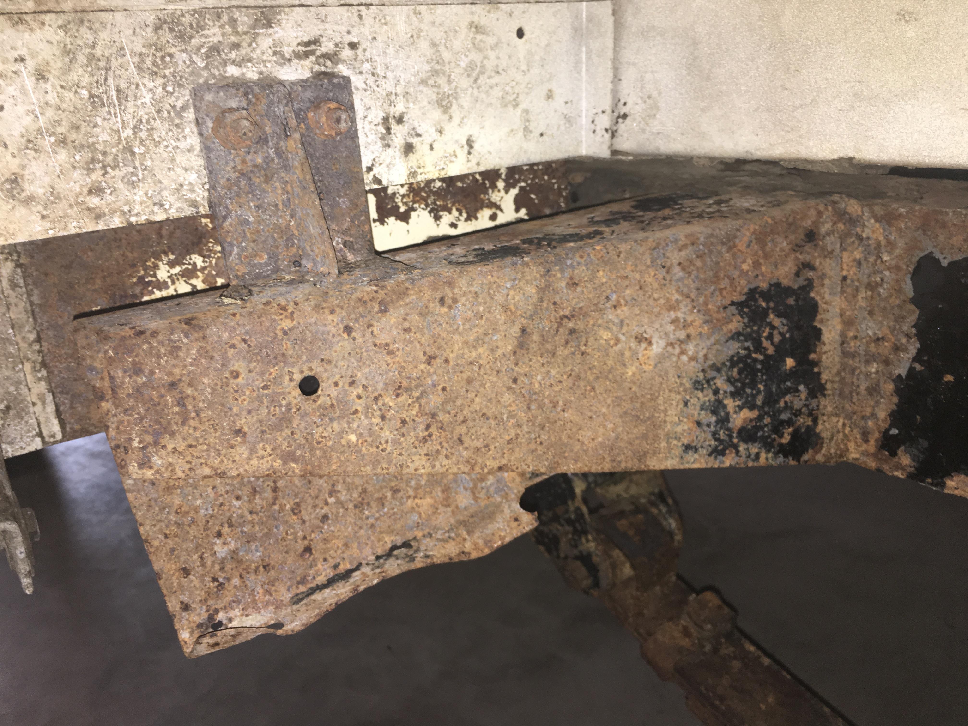 Rear part of the chassis behind the rear passenger wheel, just a bit of surface rust, and some minor pitting on the outrigger, this is the worst side and looks worse than it is