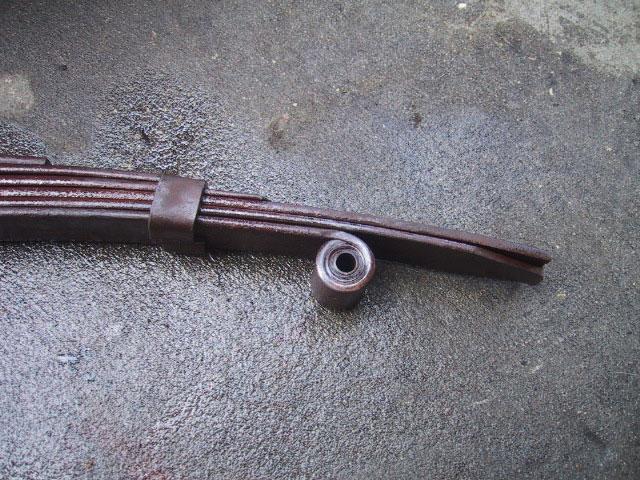 "...If you have these springs just cut a taper in the leaves, smooth up the edges and that is all. I didn't have these so I bought after market SWB petrol spings that have 9x5mm leaves so the rate is 315lb/in!!! - I removed 3 leaves (so now 6), tapered and smoothed the edges and had them reset ..."