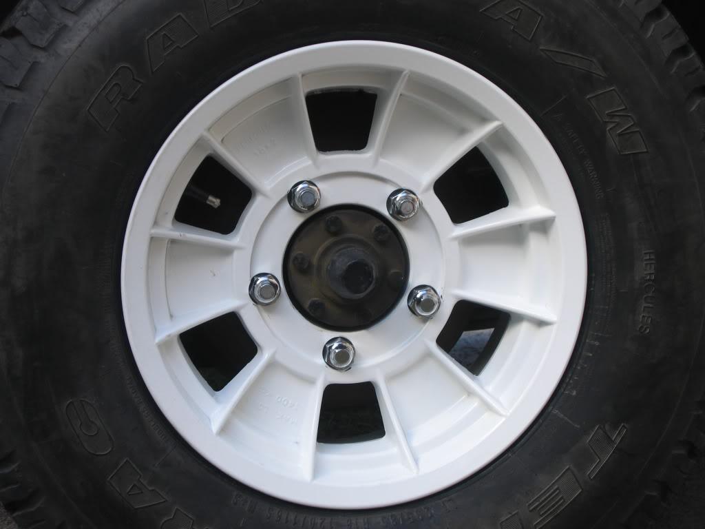 These are the alloys I run, and highly recomend them. They were used in the outback challenge a few years ago, and can take a real hammering. Each one is rated to 1400kg! I also think they look good and the tyres fill the wheel arches nicely. We went through a couple of sets of wheelnuts but, to find ones with suitable shank.