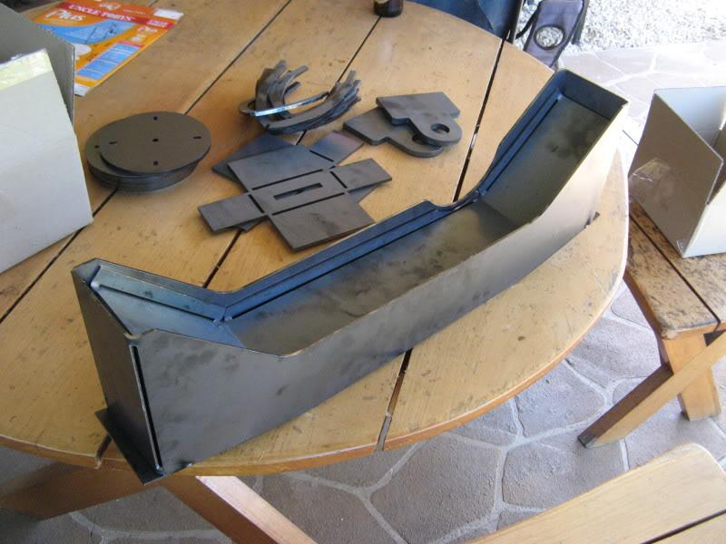 The second picture shows the top/front/rear and end section folded up and tack welded. (with the bottom section also folded, and just sitting beneath it)