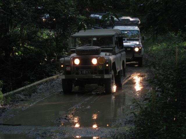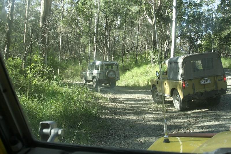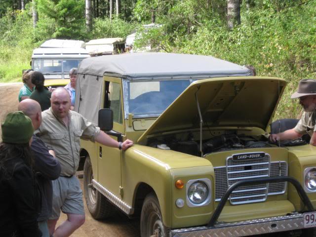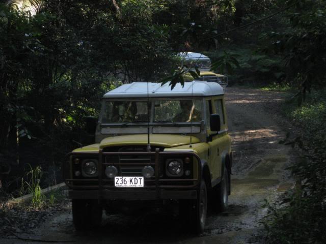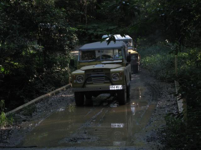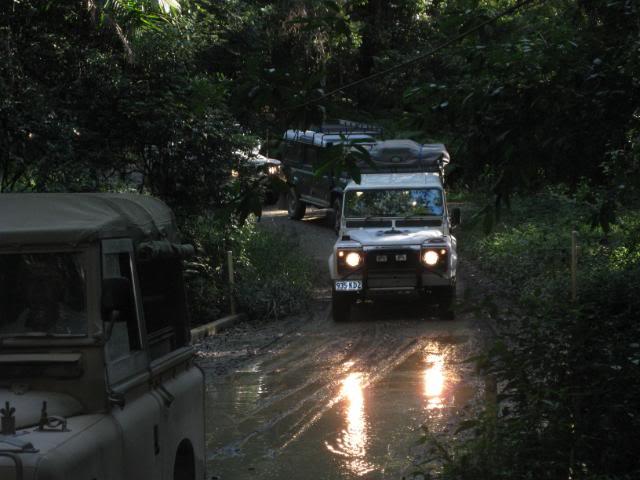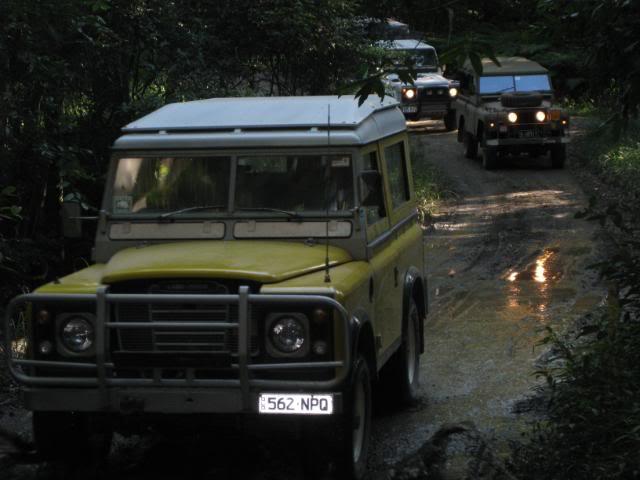 Big Dog was volunteered as guinea pig and we all watched as he slipped, slided, shimmied and bumped his way to the bottom. My vehicle was the limiting factor, and as no-one wanted to back out it took my steed to the top. The lowest gear in my arsenal was high 1, and the vacuum operated centre diff lock decided not to engage untill well after descent. Upon rounding the tree at the top the slide had already started, and then the Force took over. The cockpit was quite busy for the next few moments as I steered the bucking bronco to the bottom and out of sight of the onlookers. Upon making the right turn and ligning up the next bit, Big Dog then informs me that the next bit is quite slippery. We lined up for the next section and bounced/slid to the bottom and out of harms way. There are Many factors that in hindsight that could have been altered to raise the percentages in our favour, but after the point of no return, I must say it is the subconcious that took over, drawing on experience and training from many forms of motorsport that saved what should have been a Major incident.