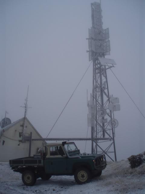 Ice was falling off the tower this day... great things about the single cab - the heater doen't need to heat much to be effective...