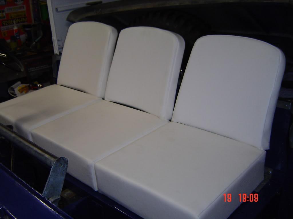 the 3 bases are all the same size .... Easy to make . I used plywood and some thin strips of that reddy colored wood (murboo) from Mitre 10 for the trim bits . Somebody said you can use a range rover rear bench seat as its the perfect profile for 80" foam seat bases ..but you only get two 80" bases per range rover seat .. your local wreckers might have rangy seats MIKE