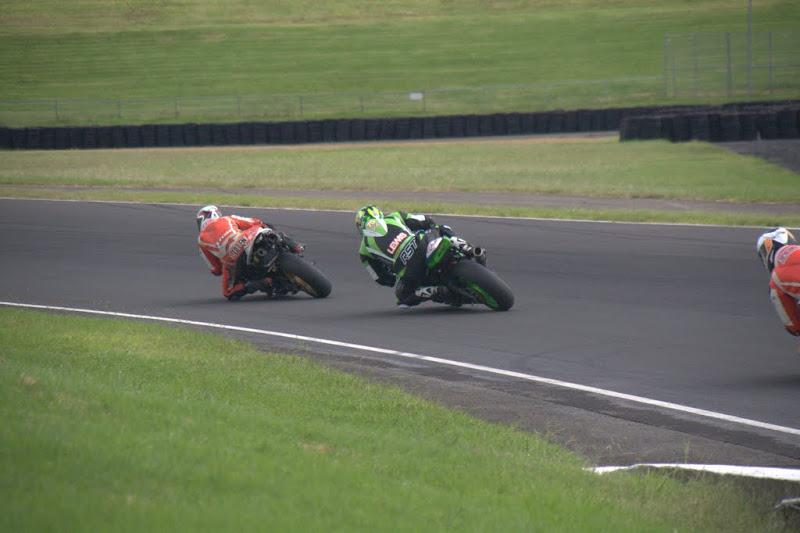 As I was doing the pit exit marshal's job, it meant I was right at the point where turn 1 commences at the end of pit straight so the bikes are really at top speed - 180-190km/h for the 650 Hyosungs a couple of friends were racing (and they were slow) and probably closer to 260km/h for the superbikes.