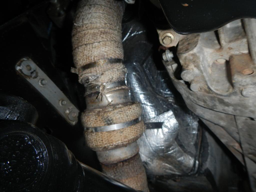 2/ Wrapped the engine pipe from below the turbo to the join at the centre pipe with a ceramic heat wrap.