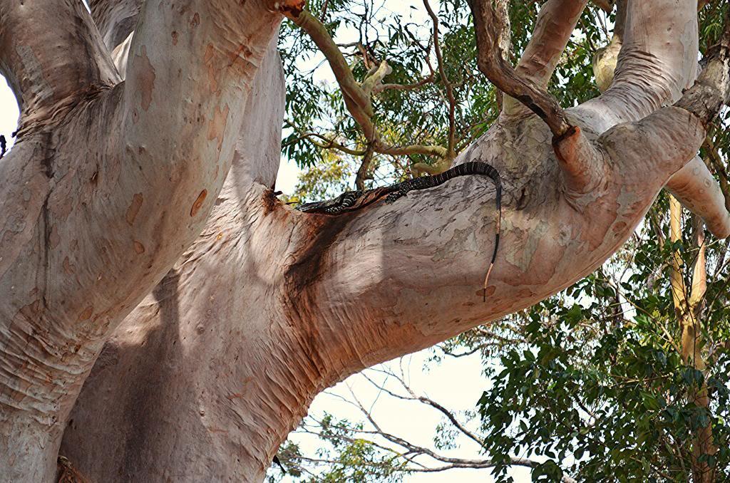 While visiting Nelson Bay today to watch my grandson play in his football grandfinal I happened across this Monitor lizard in a tree above the carpark.