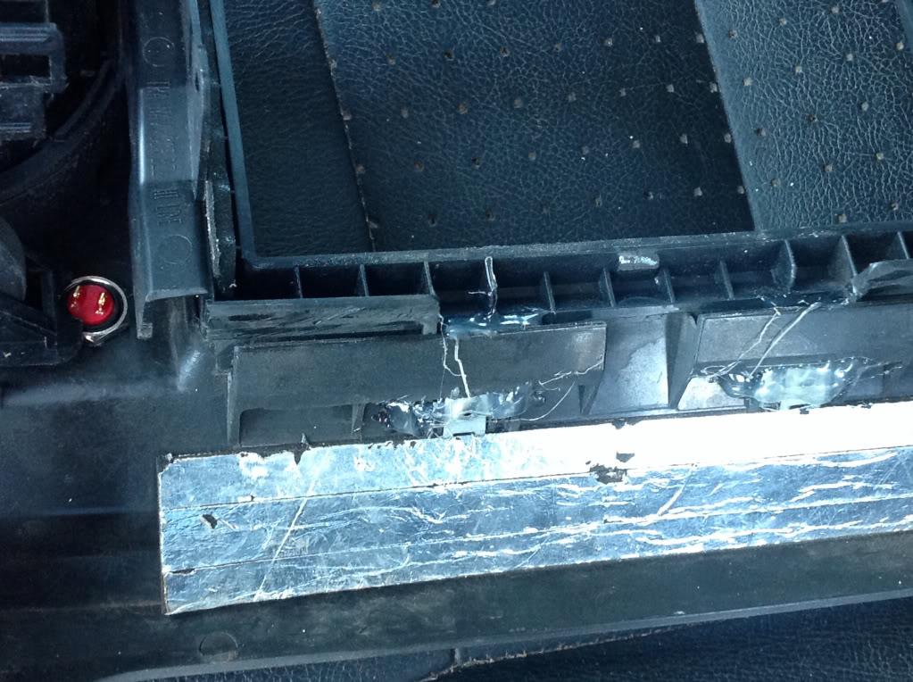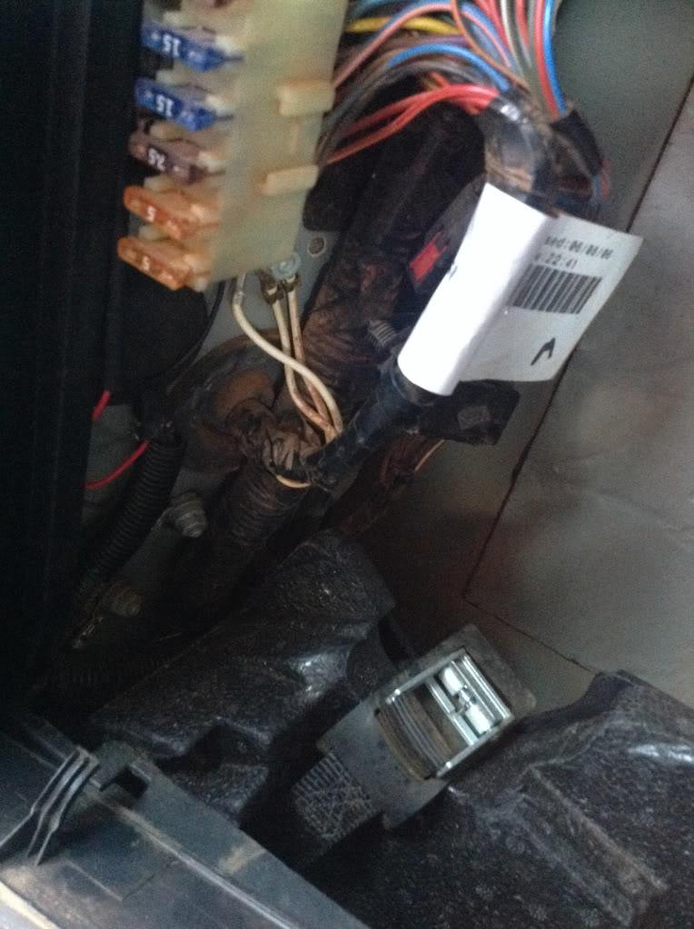 13. Remove the trim in the passenger footwell. Feed the AV cable up, and underneath the lower glovebox