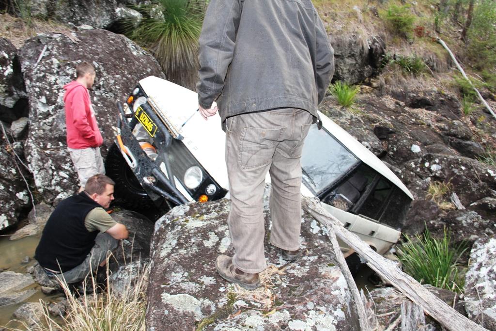 The wheeling was good, lots of different stuff but the damage list for the weekend for me was panel damage to the back right corner, bent the chassis outrigger and panel and broke the fibreglass flare, bent the handbrake backing plate and had to straighten that out, knocked off a couple of the studs and nuts that hold the transfer case sump on (fortunately still held it's oil) and broke the drivers side (short) axle halfway up a very steep and loose climb. Thanks again to Rod for winching me up to the top. Pulled the axle out and it had broken right near the drive flange so it took a while to get all the metal pieces out from around the bearing. Drove home in front wheel drive without any real issues. And thanks to Dave for shepherding me home at what has to be a slow speed for a D3, even with a camper.